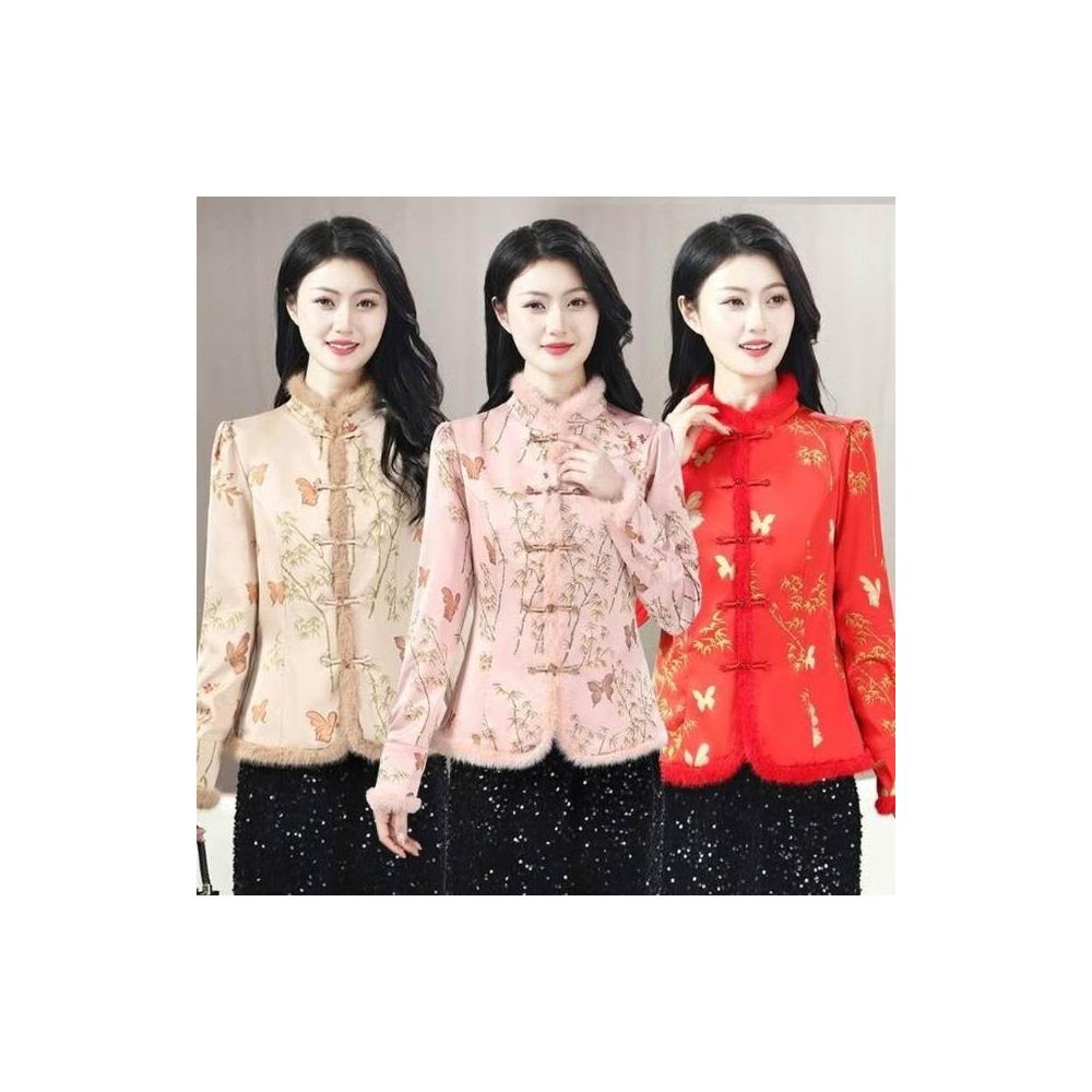 新品 含发票 唐裝女中國風改良款潮旗袍上衣中式復古盤扣小棉襖冬季加厚外套女