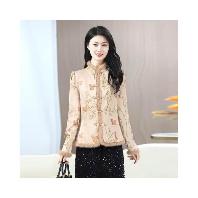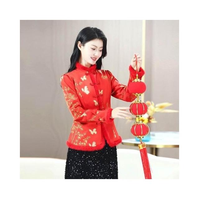 新品 含发票 唐裝女中國風改良款潮旗袍上衣中式復古盤扣小棉襖冬季加厚外套女