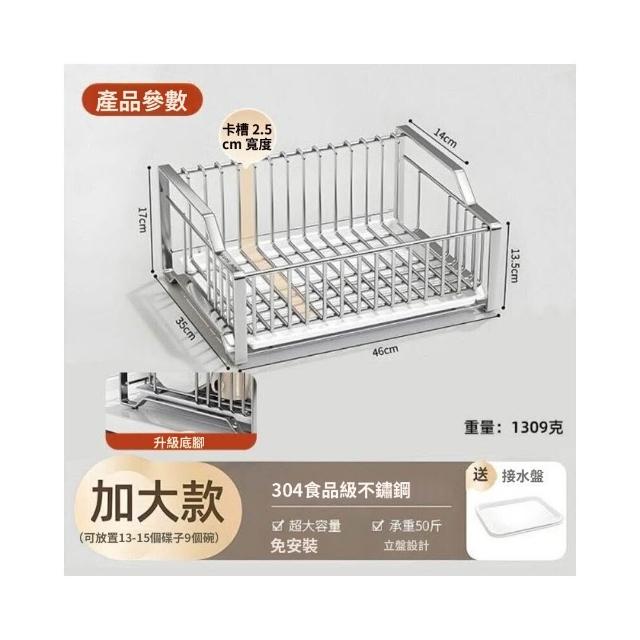 新品 含發票 碗碟收納架304不銹鋼廚房抽屜內置碗架放碗具碗筷瀝水架2025新款
