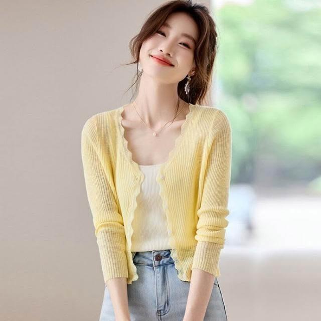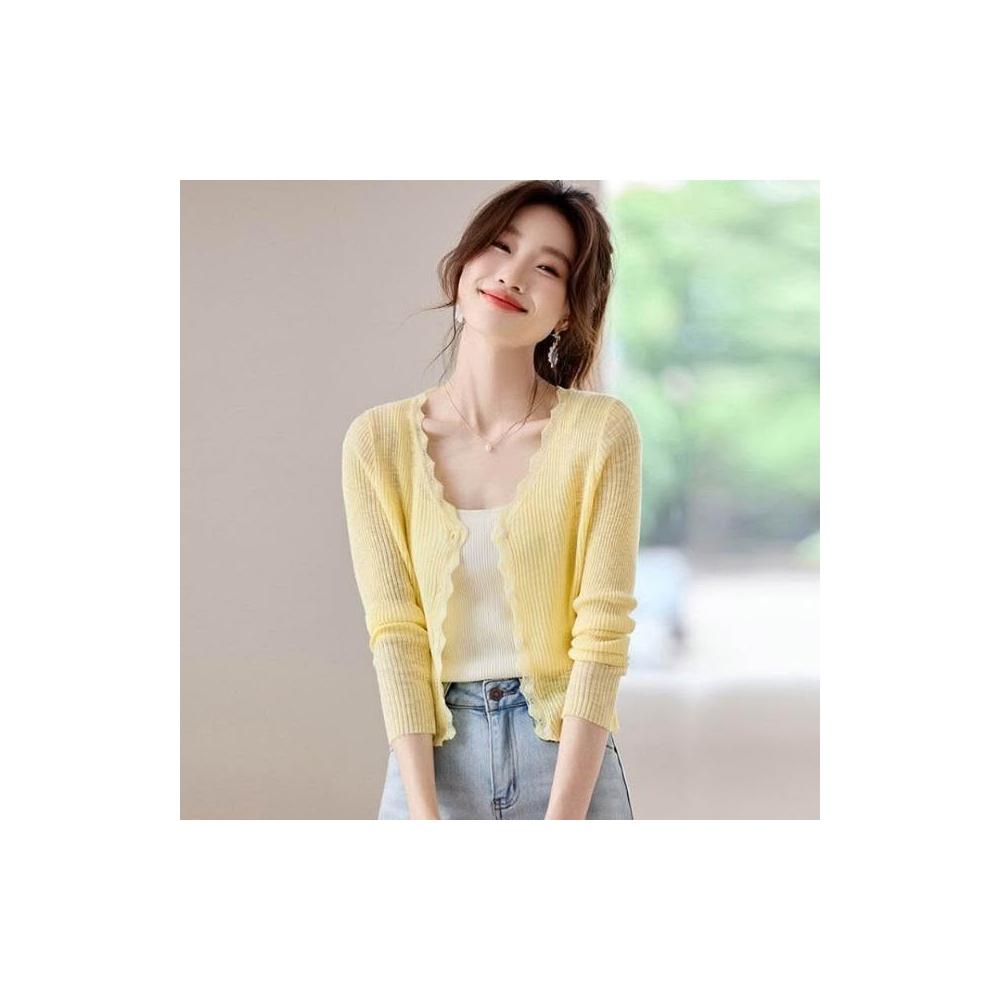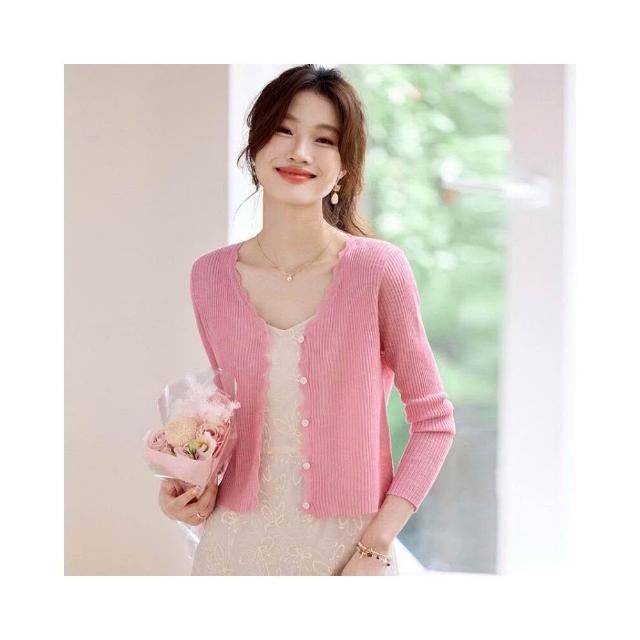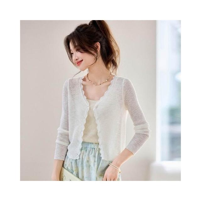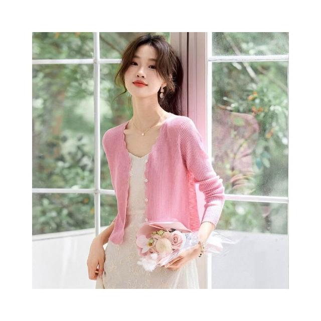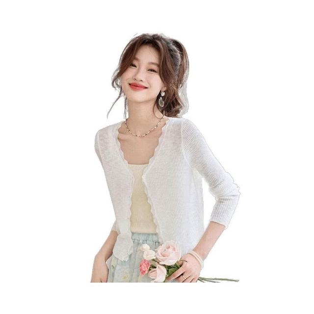 新品 含發票 短款防曬開衫女夏季薄款外搭配吊帶裙披肩罩衫冰絲針織空調衫外套