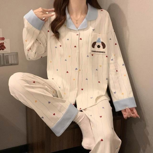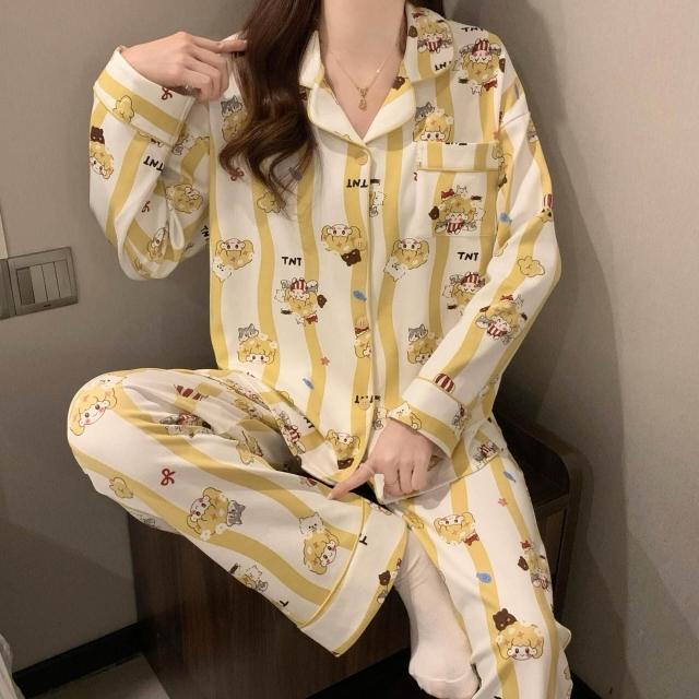 新品 含發票 奶油黃小熊睡衣女款春秋季長袖可愛卡通家居服2026年新款兩件套裝