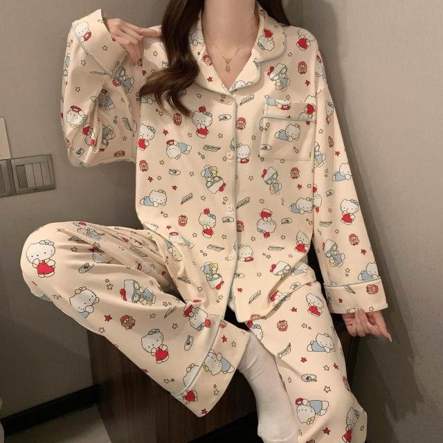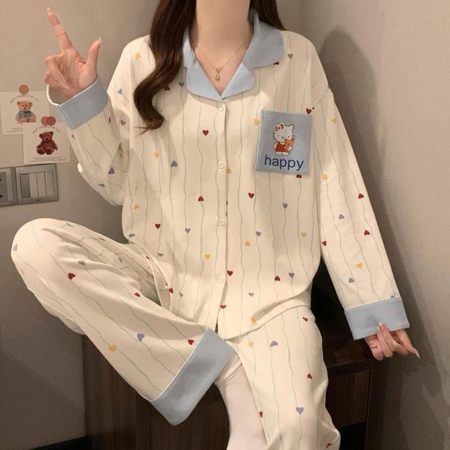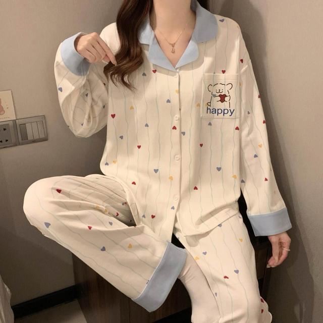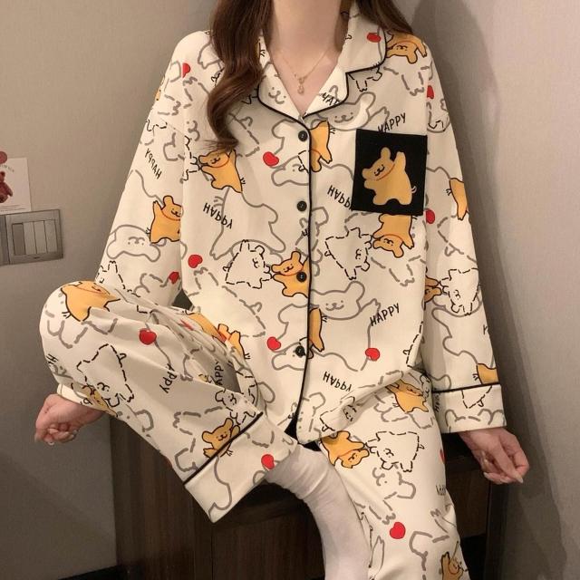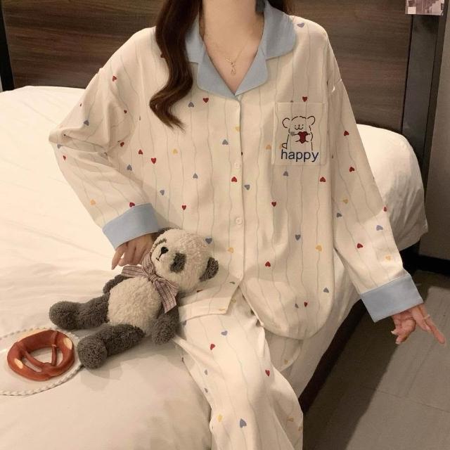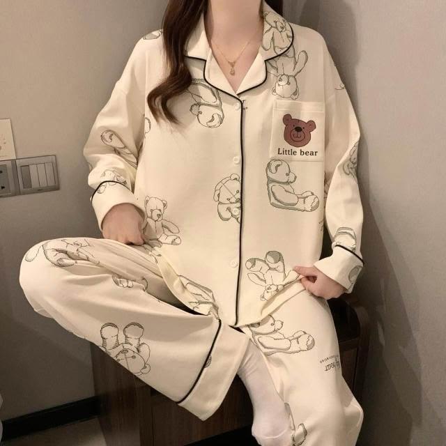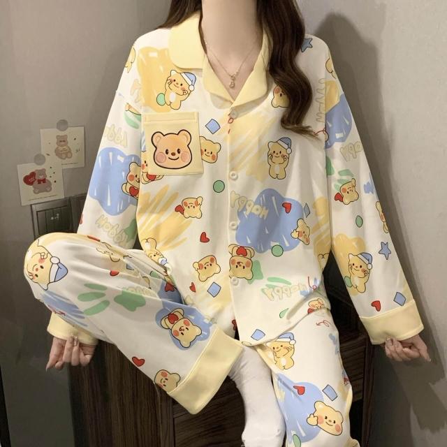 新品 含發票 奶油黃小熊睡衣女款春秋季長袖可愛卡通家居服2026年新款兩件套裝