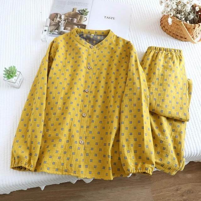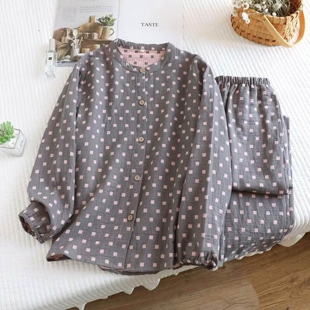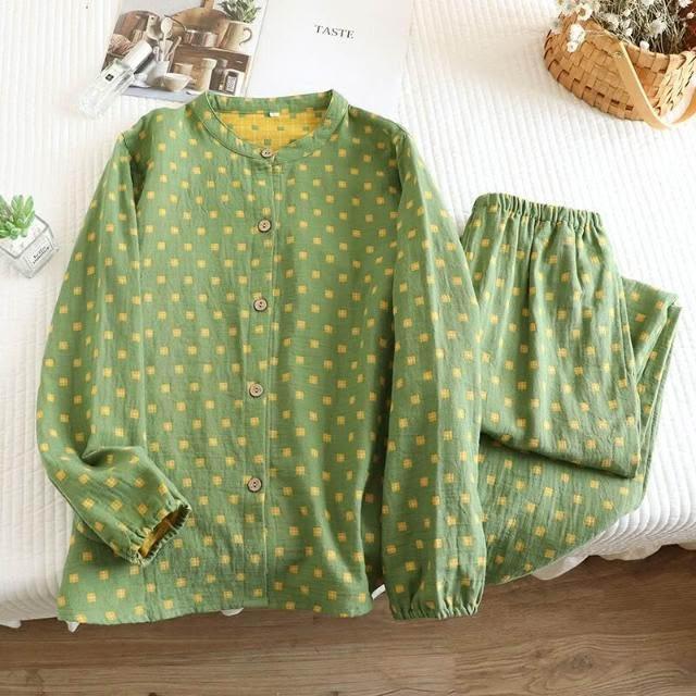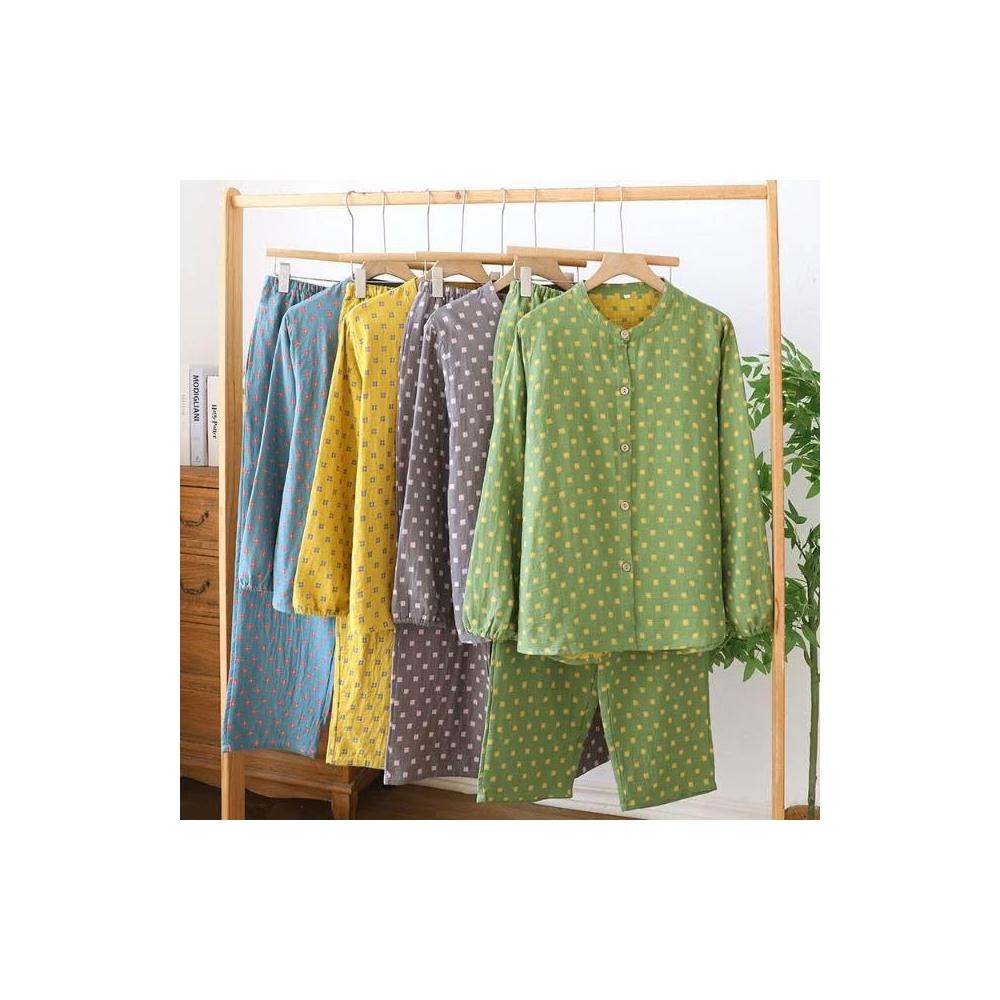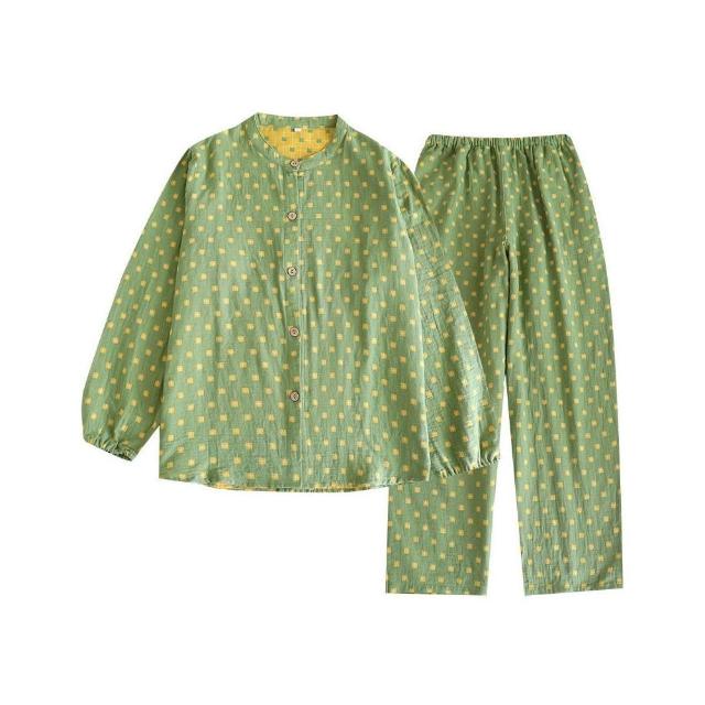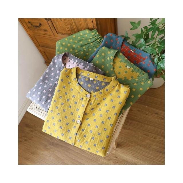 新品 含發票 花妍全棉雙層棉紗女士家居服長袖長褲套裝睡衣休閑純棉透氣薄款