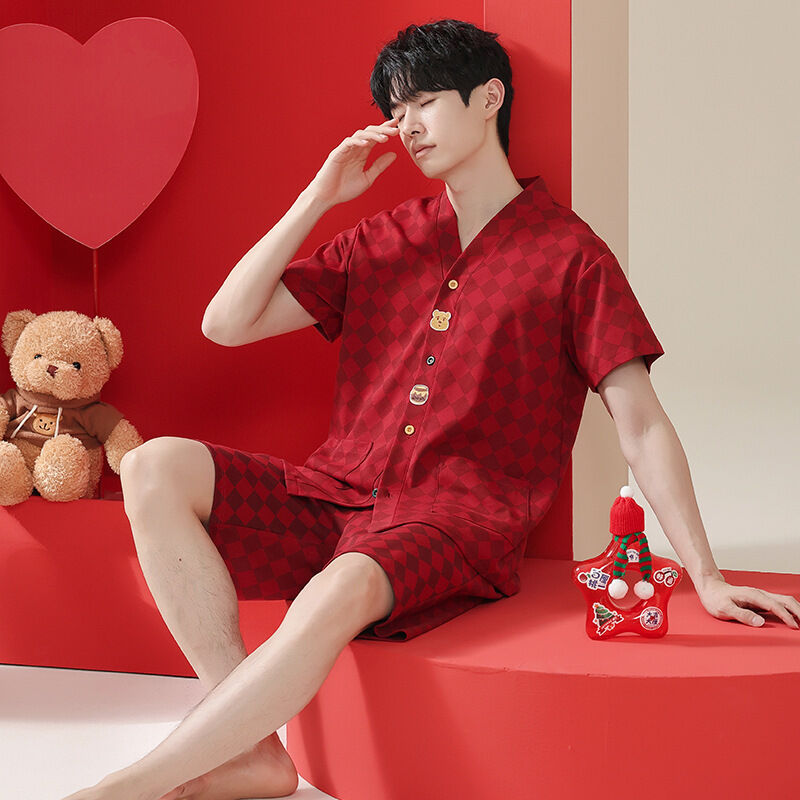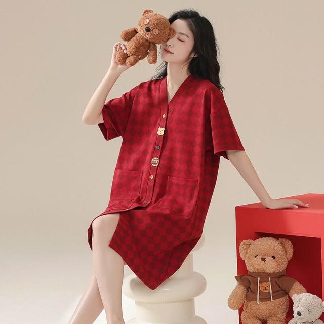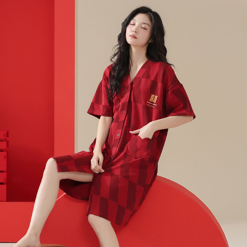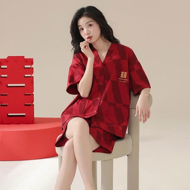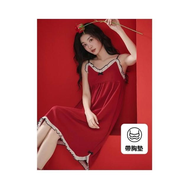 新品 含發票 夏季情侶睡衣純棉女吊帶性感睡裙帶胸墊防凸點女裙紅色男士家居服
