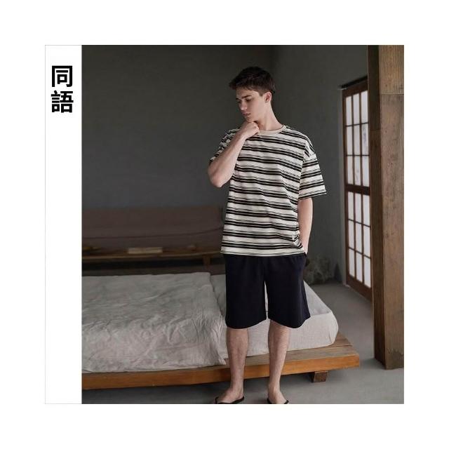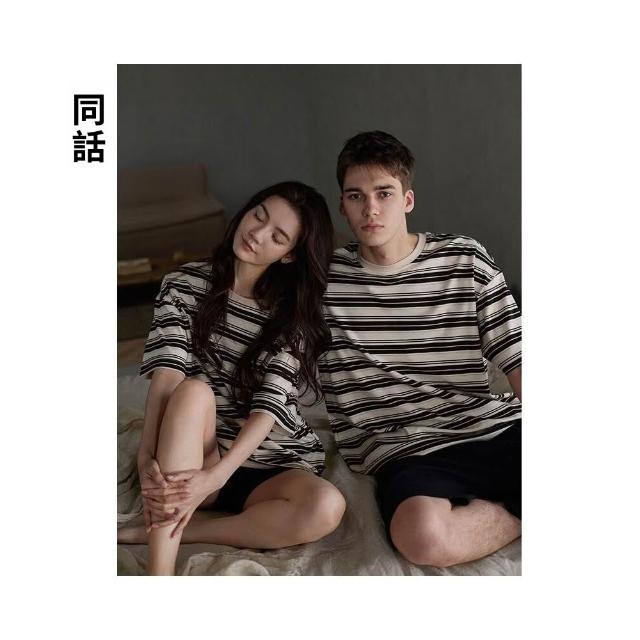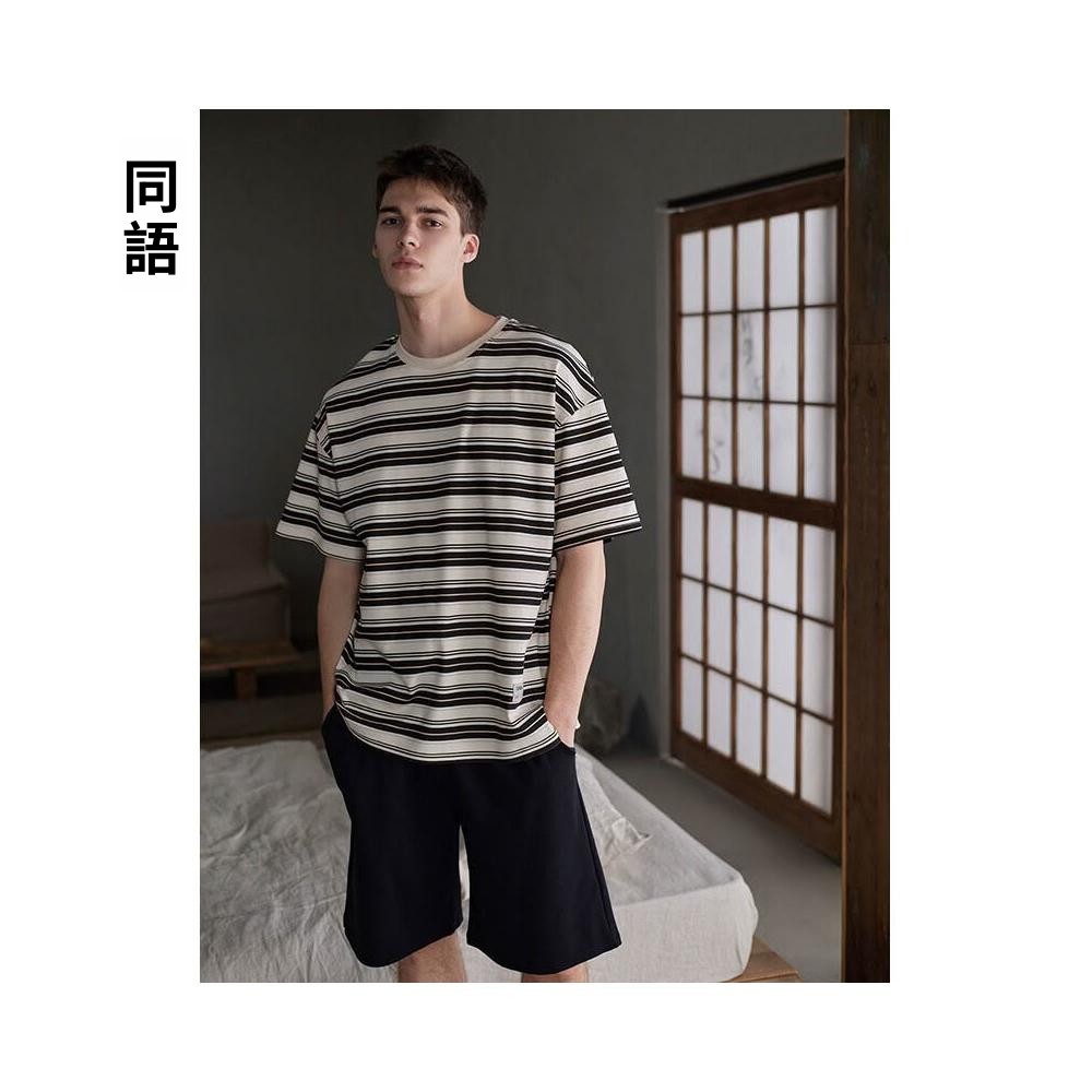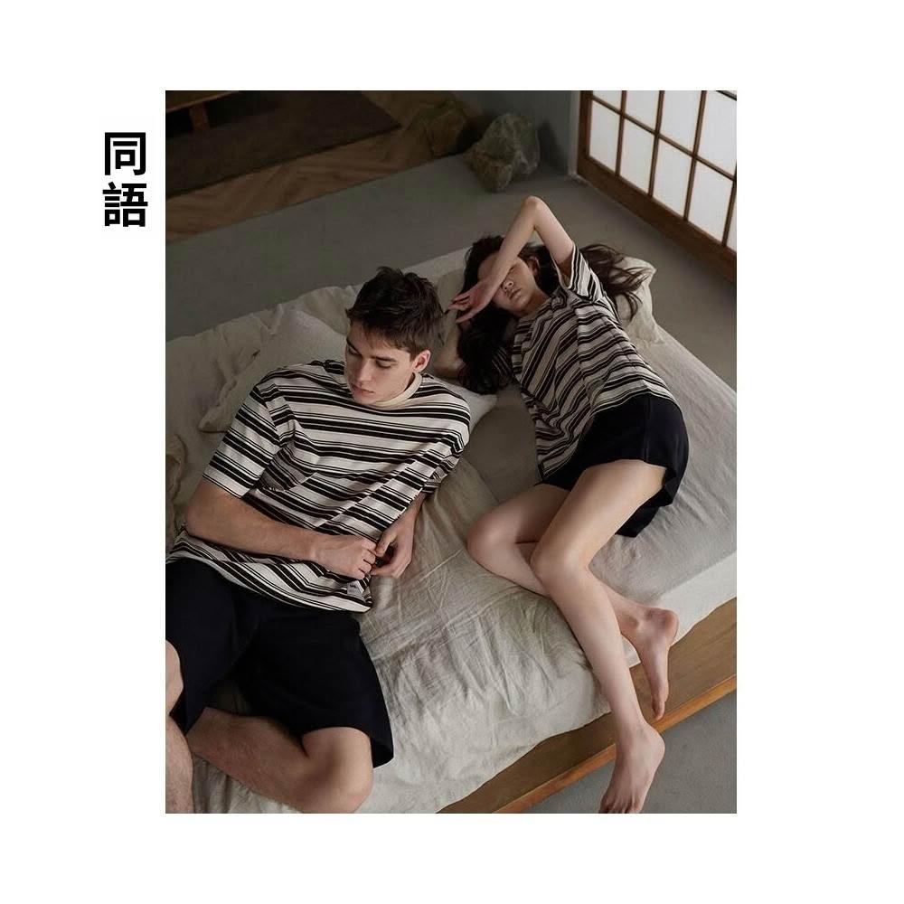 新品 含發票 同語夏季情侶睡衣涼感棉柔軟短袖套裝條紋可外穿男女士家居服夏天