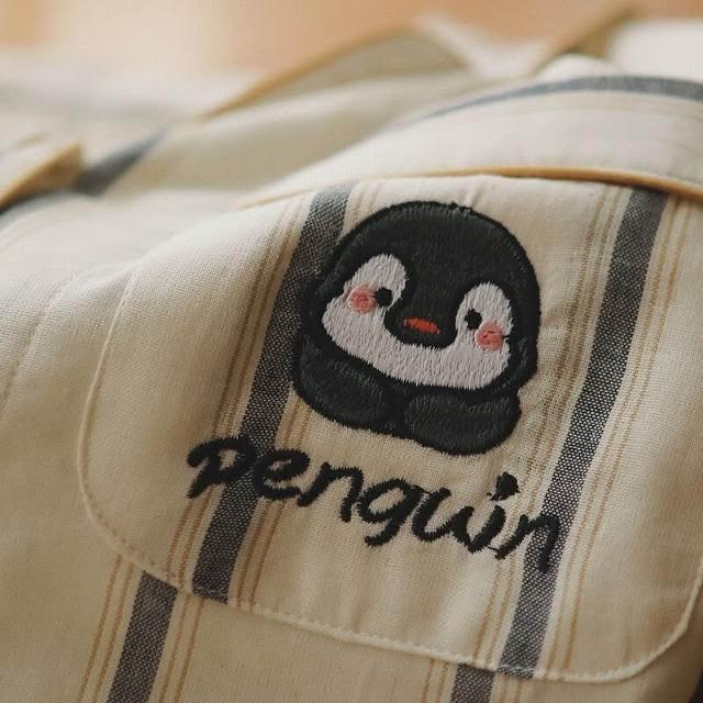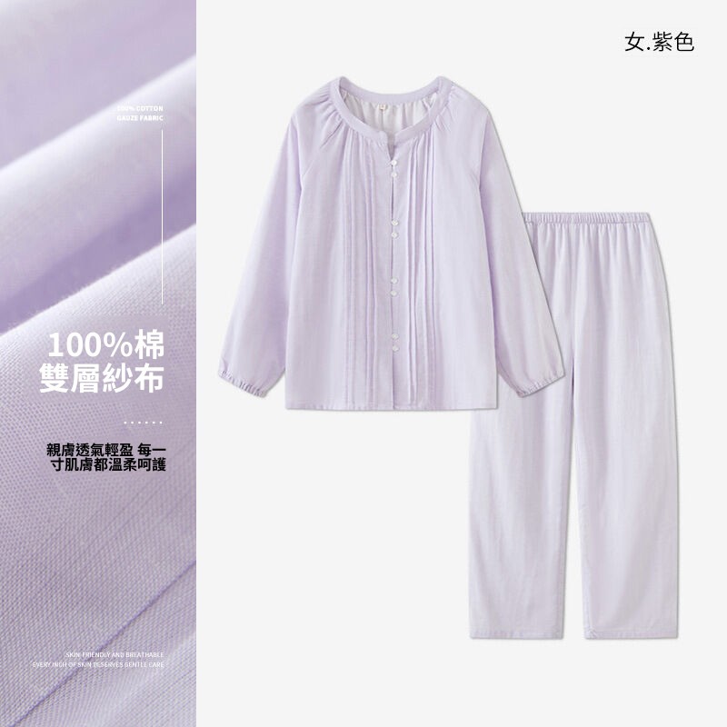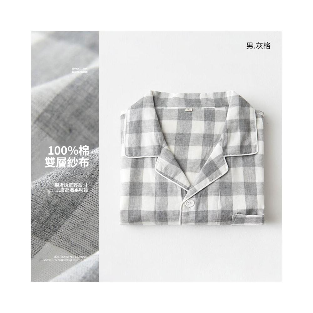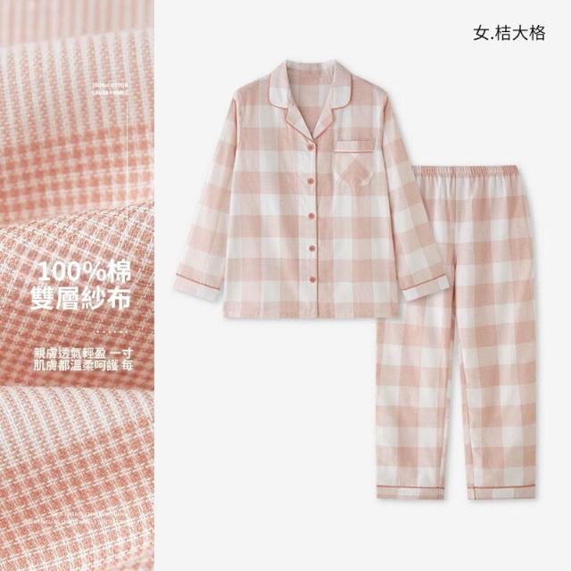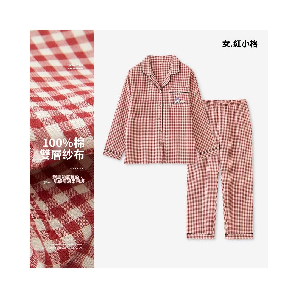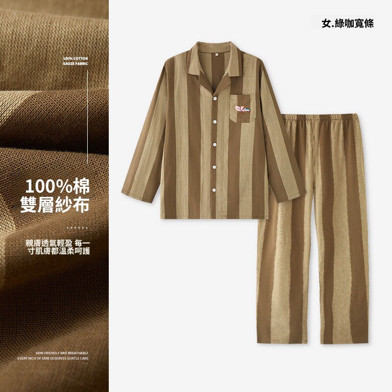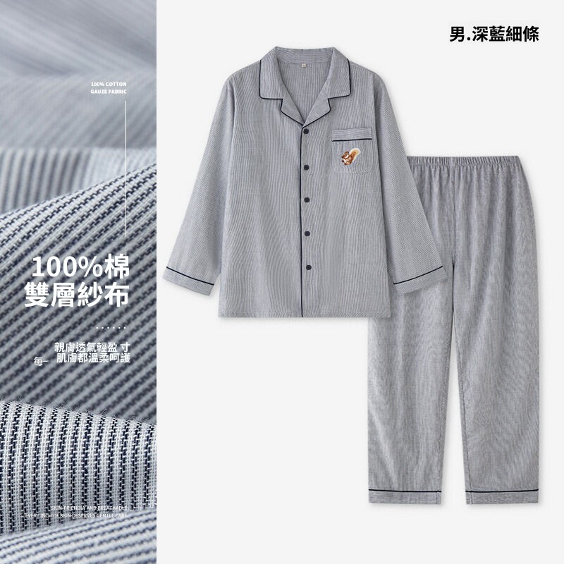 新品 含發票 情侶睡衣女無印春秋季純棉紗布刺繡條紋野獸家居服男士長袖套裝夏