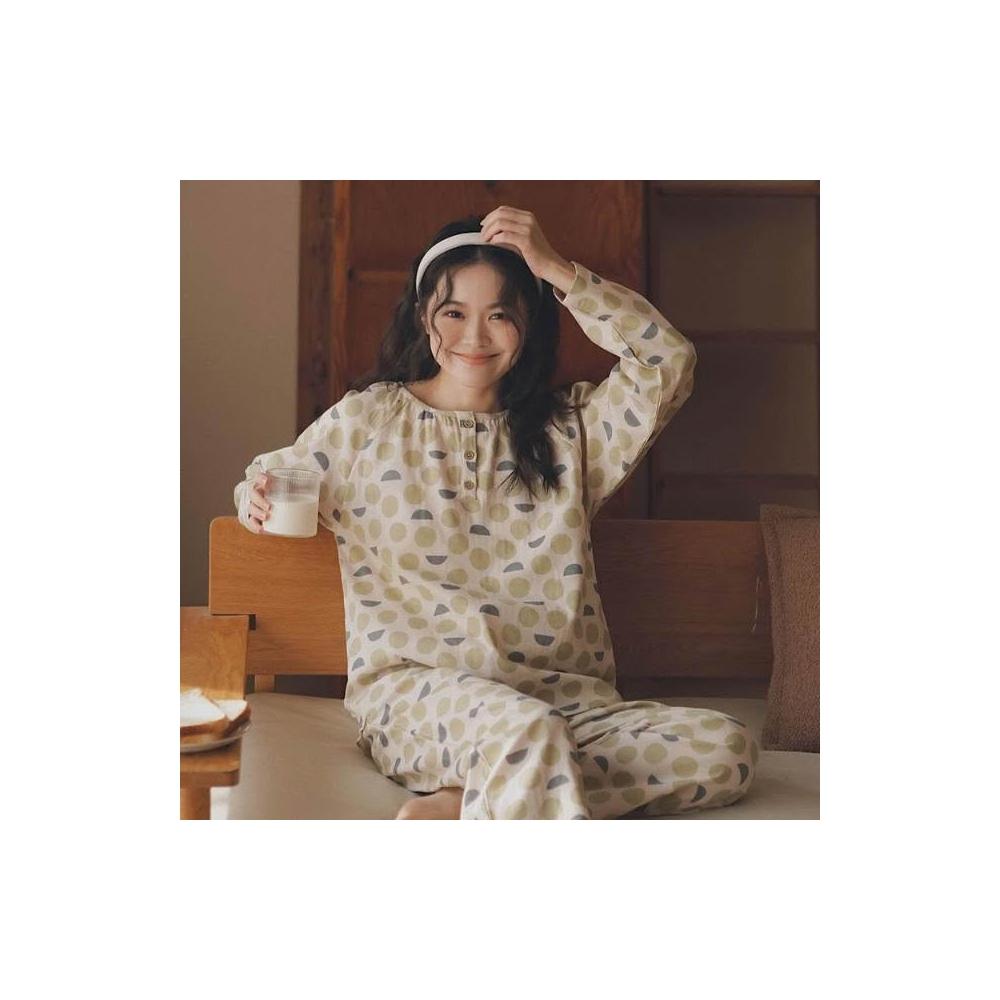 新品 含發票 圓滿75-套頭睡衣女純棉紗布長袖套裝春秋季可外出全棉家居服大碼