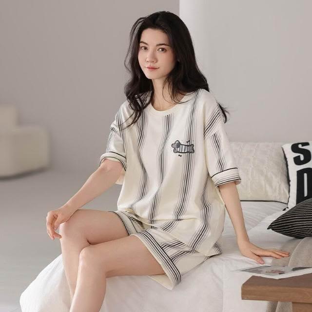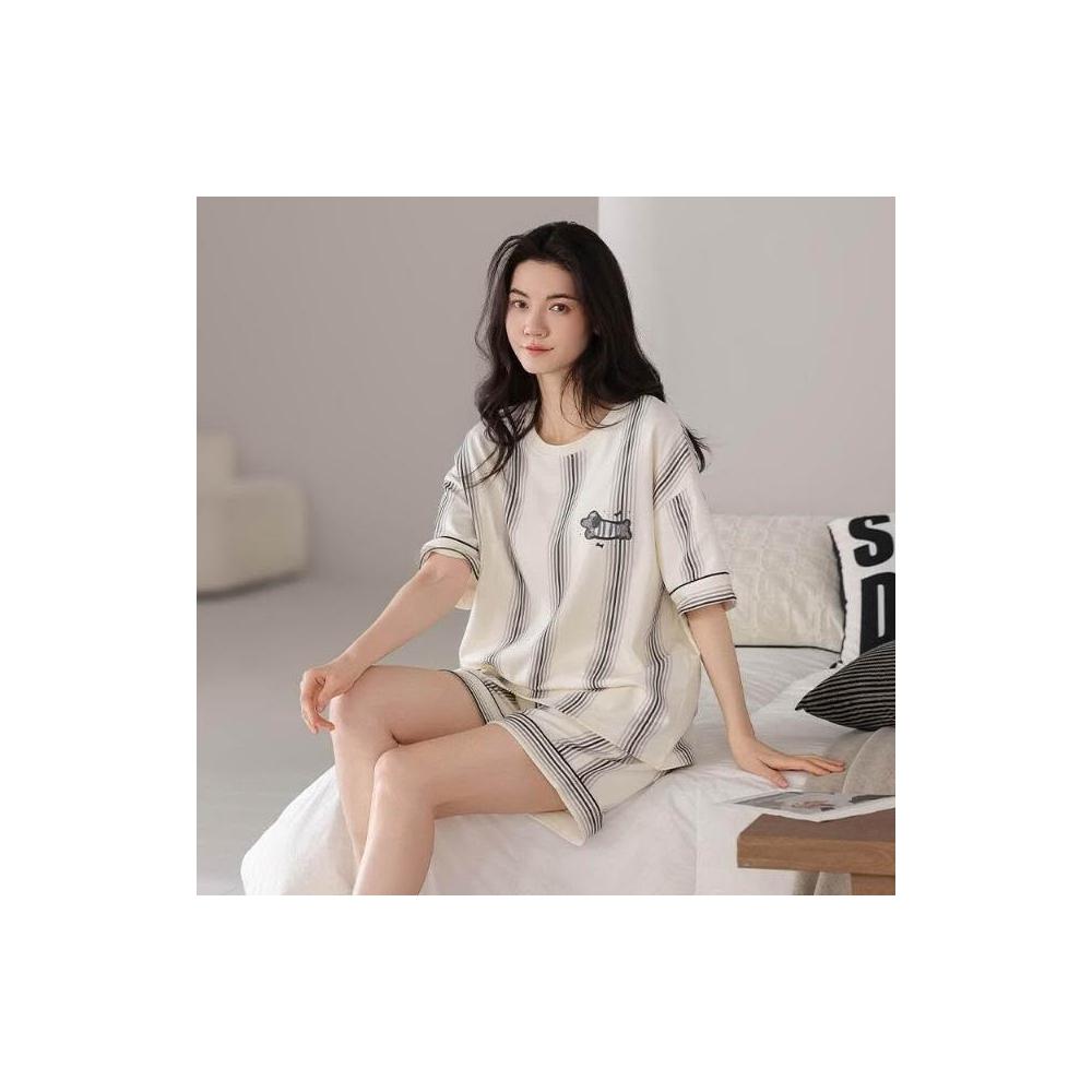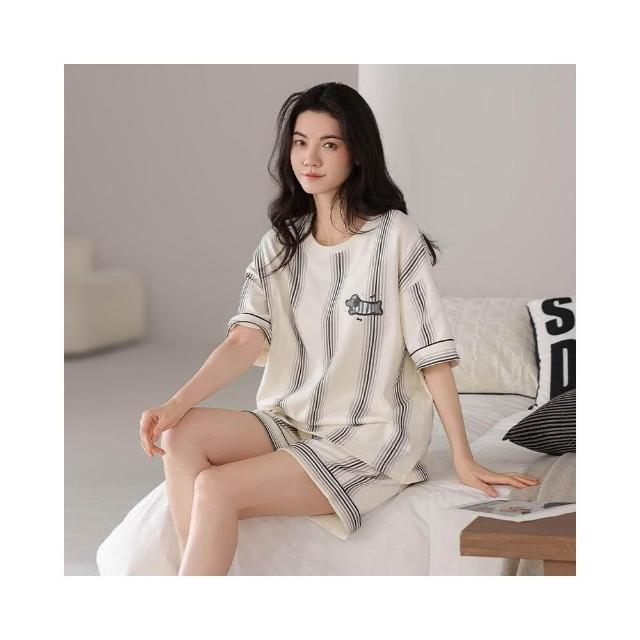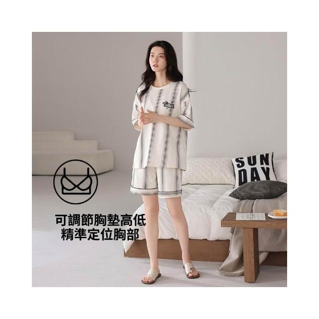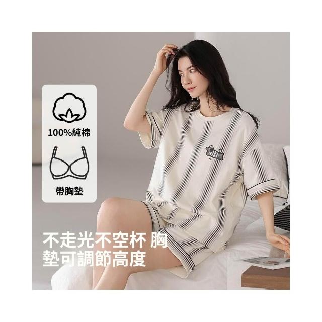 新品 含發票 帶胸墊睡衣女士夏季純棉短袖短褲薄款夏天新款大碼夏款全棉家居服