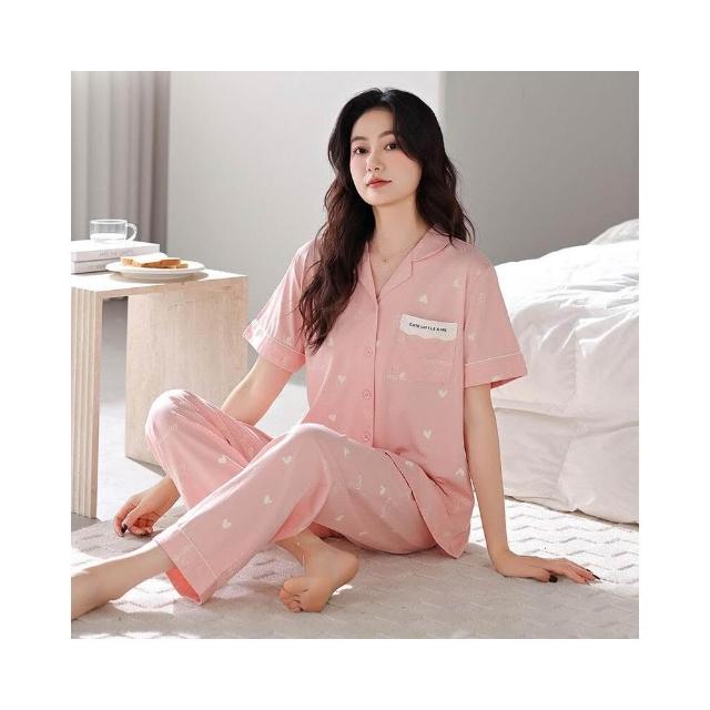 新品 含發票 純棉睡衣女夏季短袖長褲家居服新款寬松中年媽媽大碼春秋半袖薄款