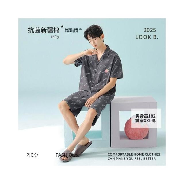 新品 含發票 抗菌新疆棉春夏季男士純棉短袖睡衣拉架棉薄款休閑家居服套裝
