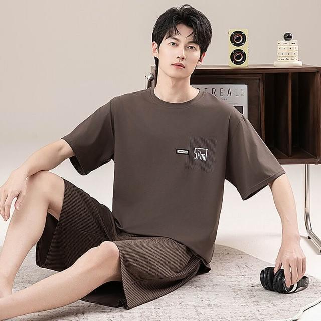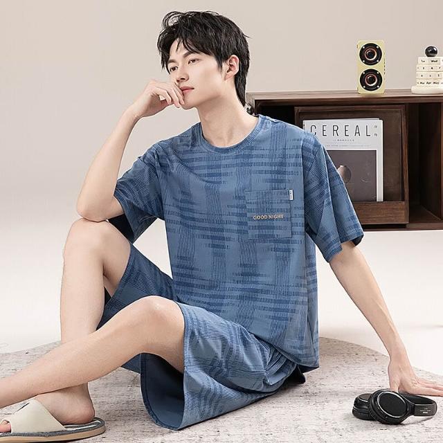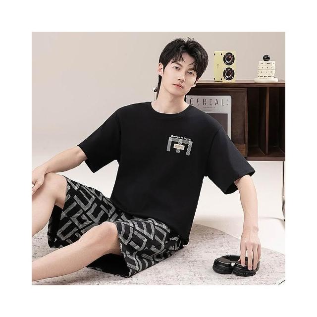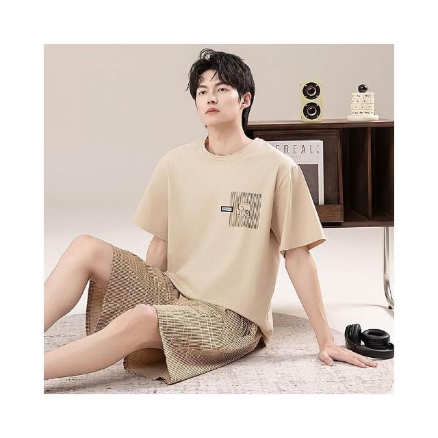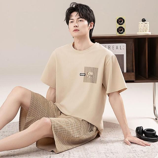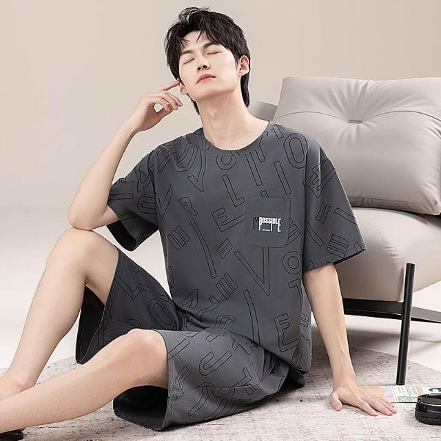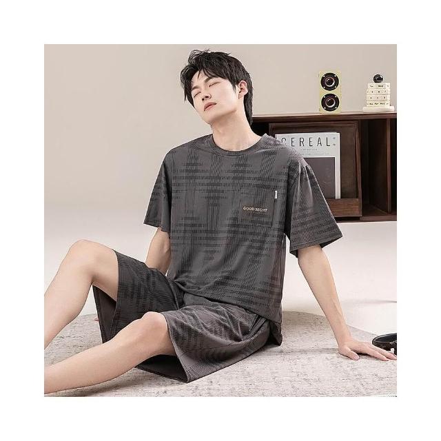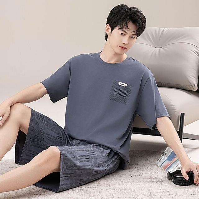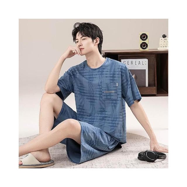 新品 含發票 男士睡衣夏季短袖100%純棉套裝男式寬松加肥大碼休閑青少年家居服