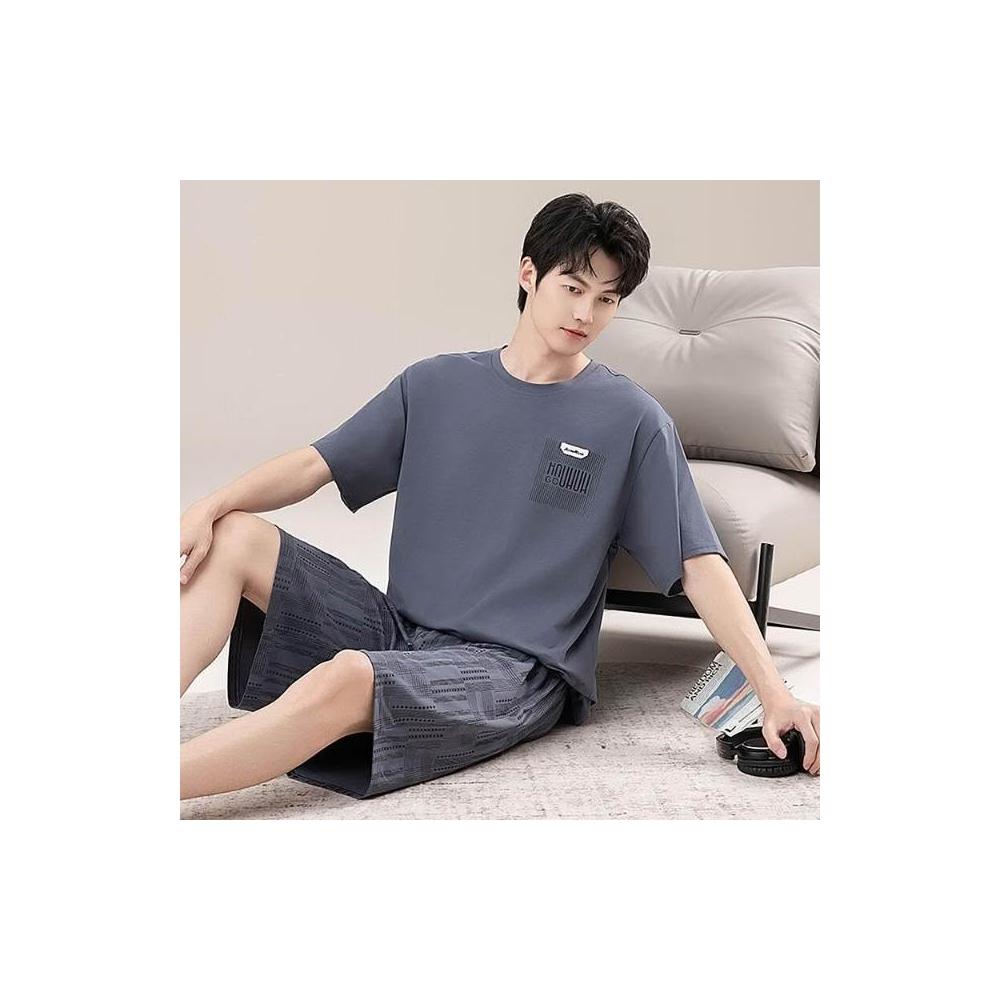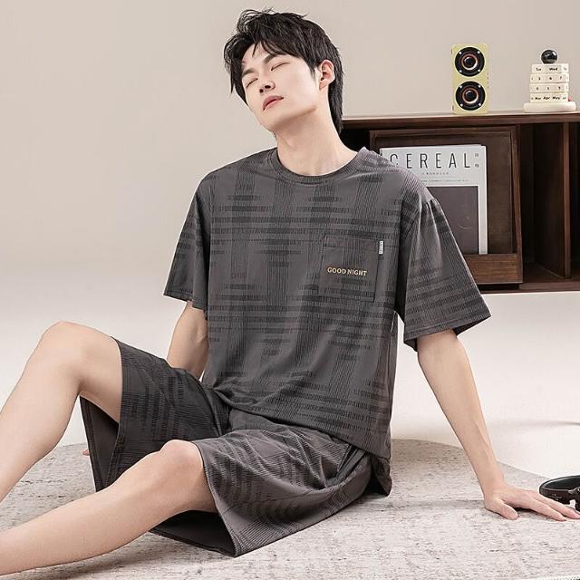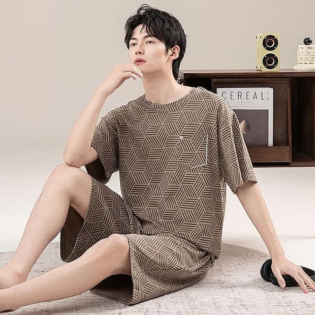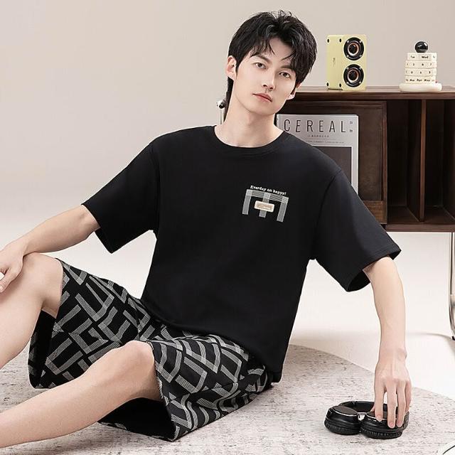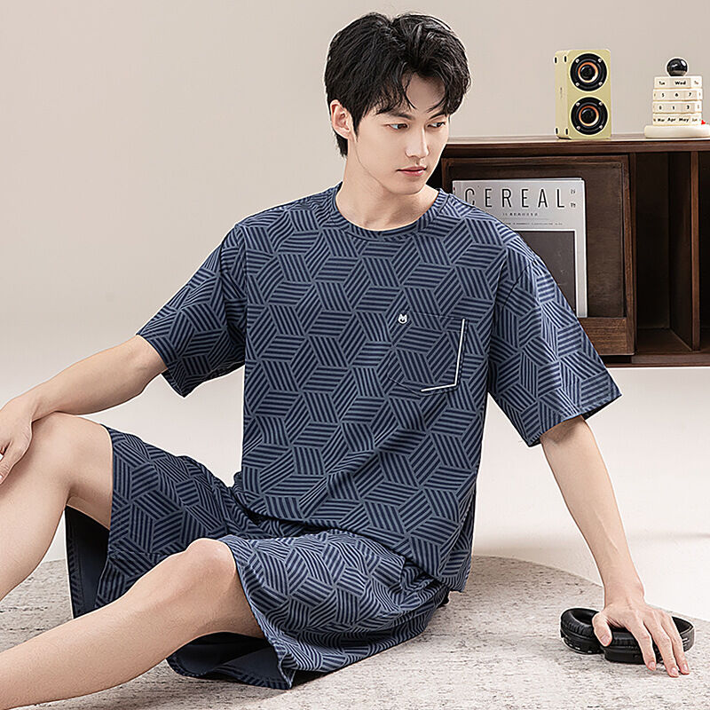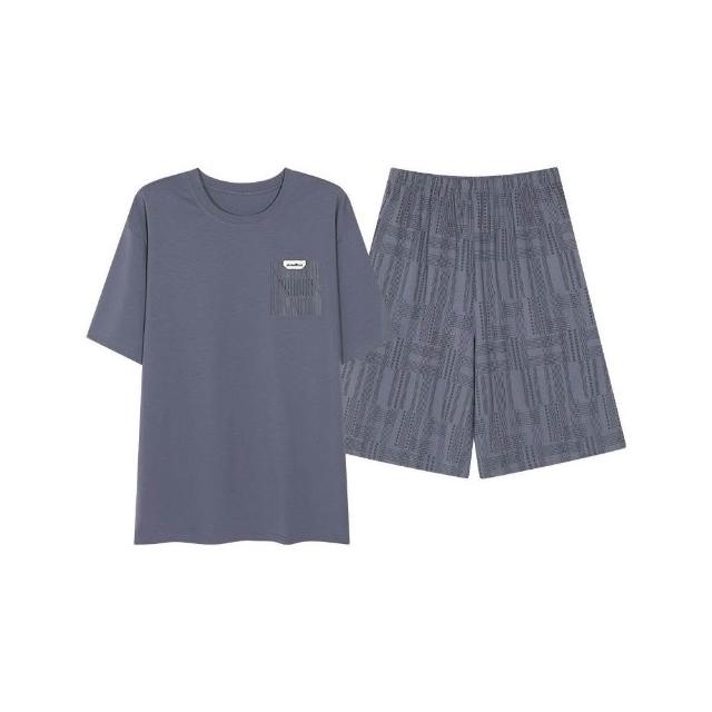 新品 含發票 男士睡衣夏季短袖100%純棉套裝男式寬松加肥大碼休閑青少年家居服