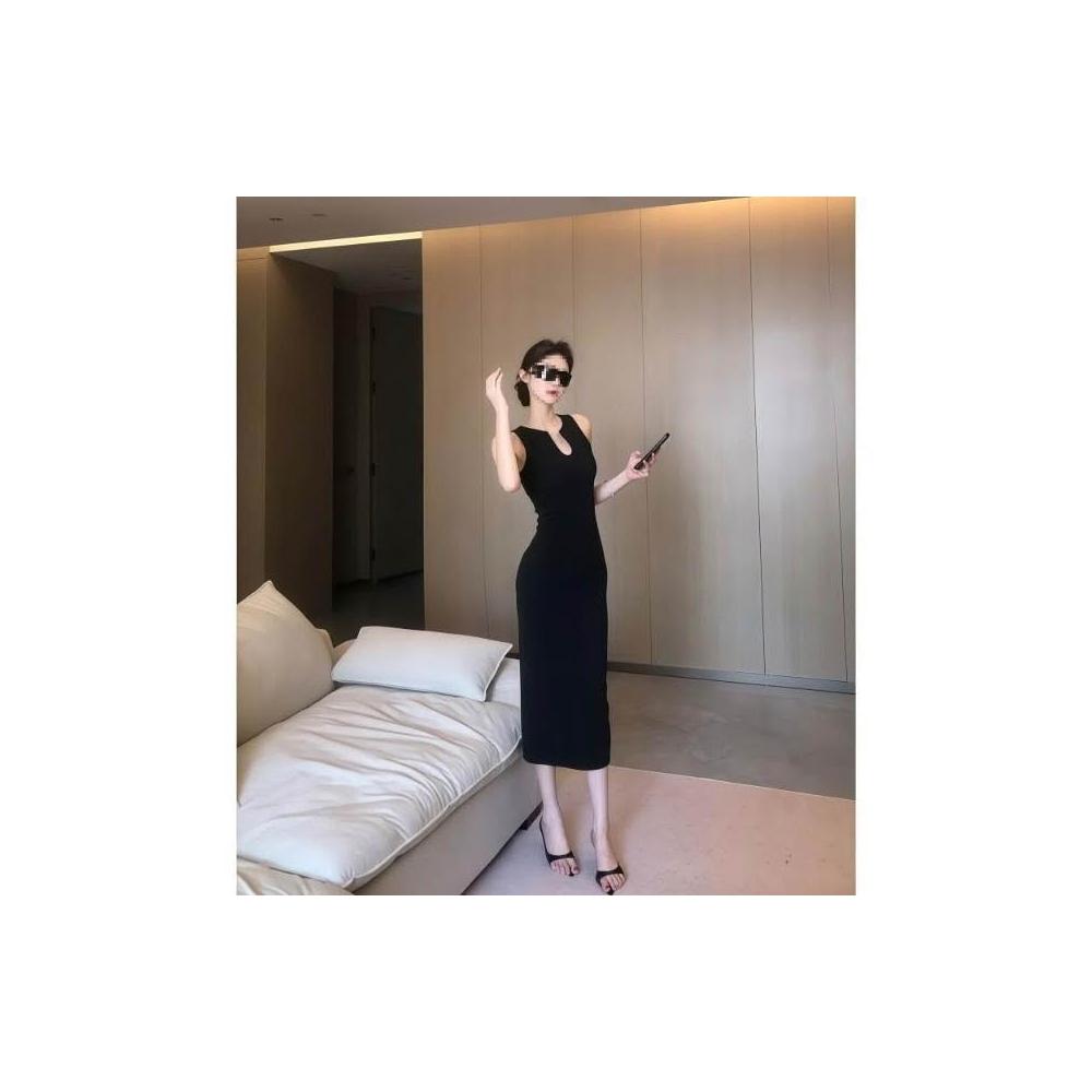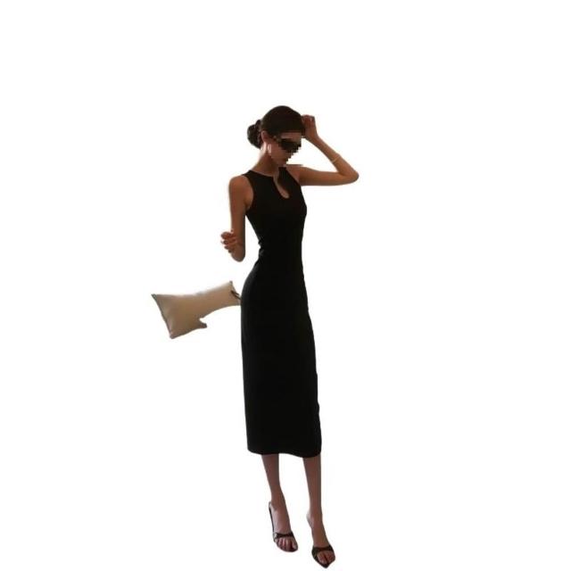 新品 含發票 法式U領復古氣質無袖收腰包臀連衣裙女夏季新款高級感時尚中長裙