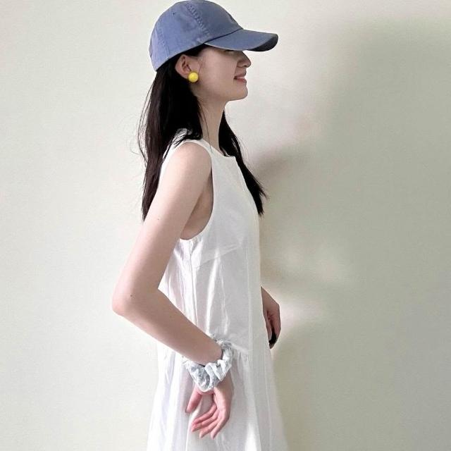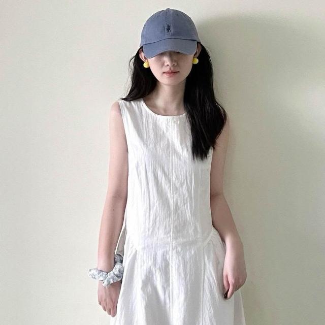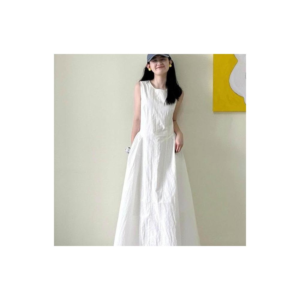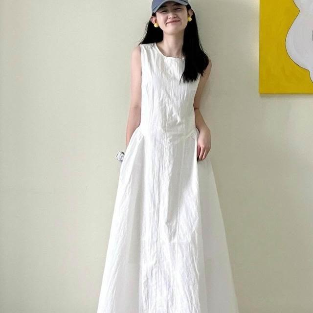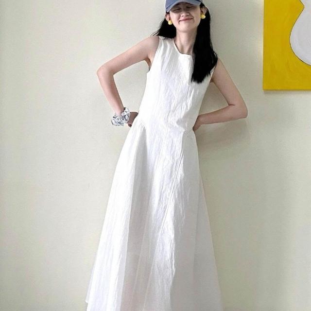 新品 含發票 法式無袖背心白色連衣裙夏女2025新款高級感褶皺收腰長款小白裙子