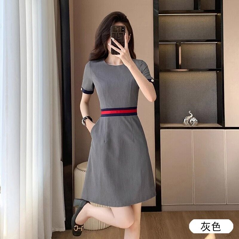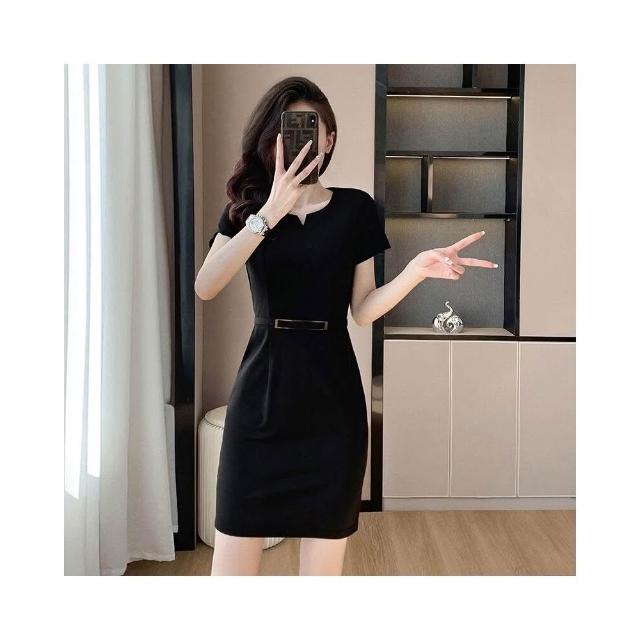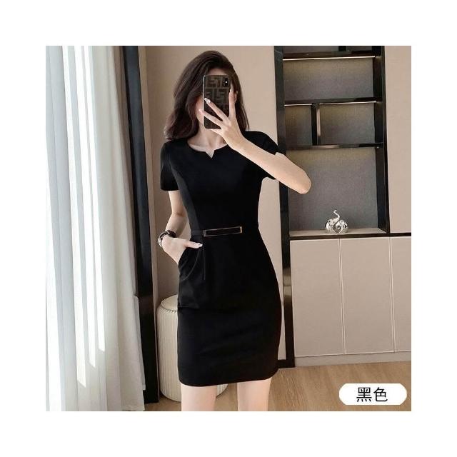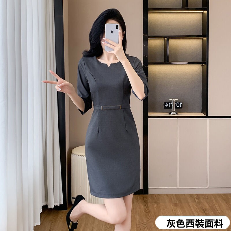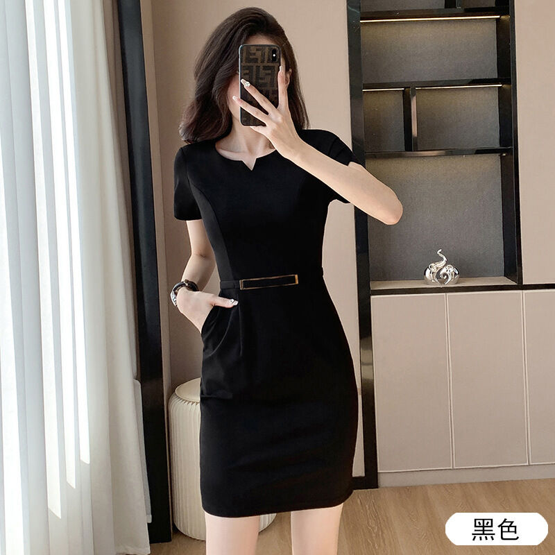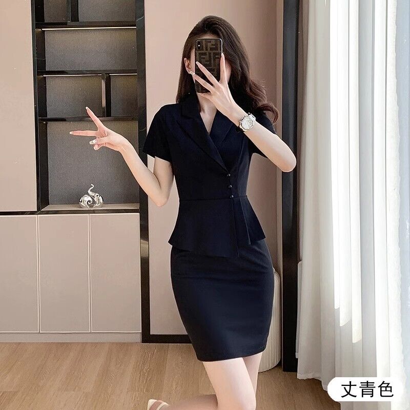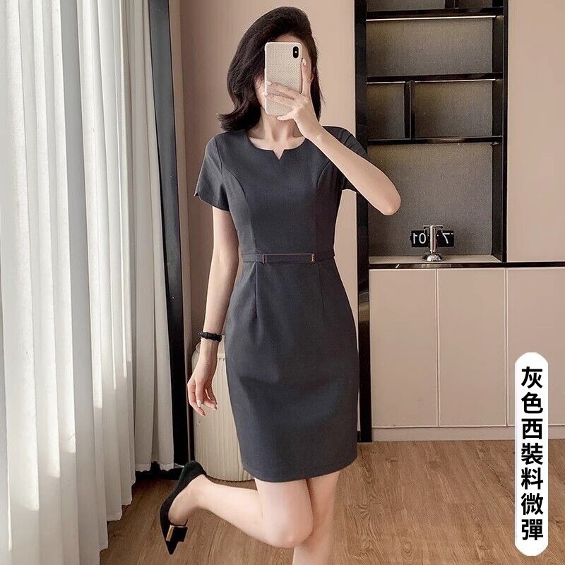新品 含發票 職業短袖連衣裙女夏季薄款酒店前臺接待修身工作服氣質珠寶店工裝