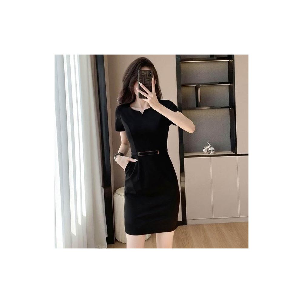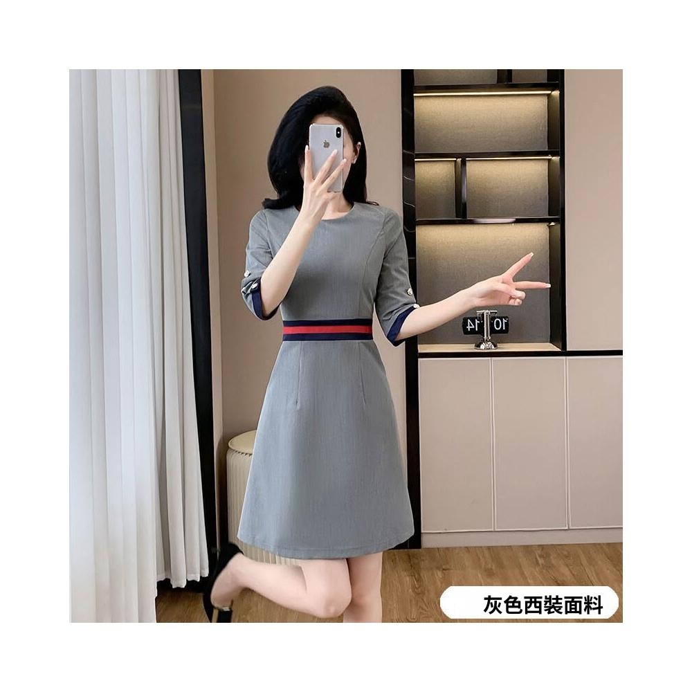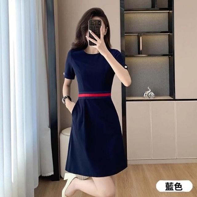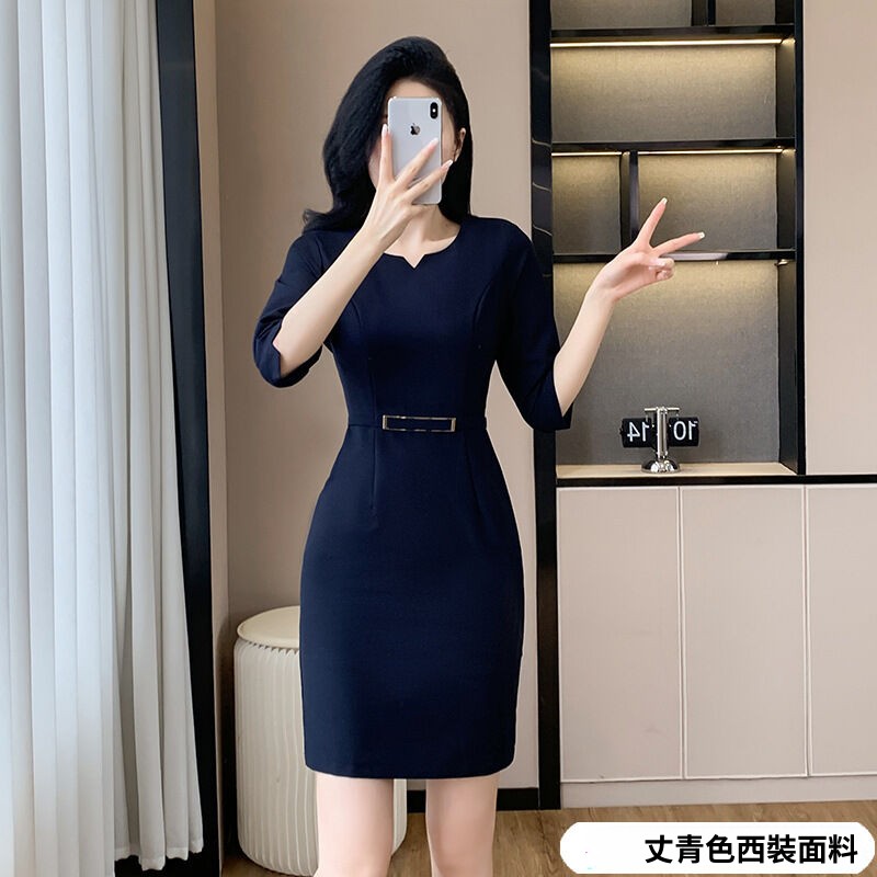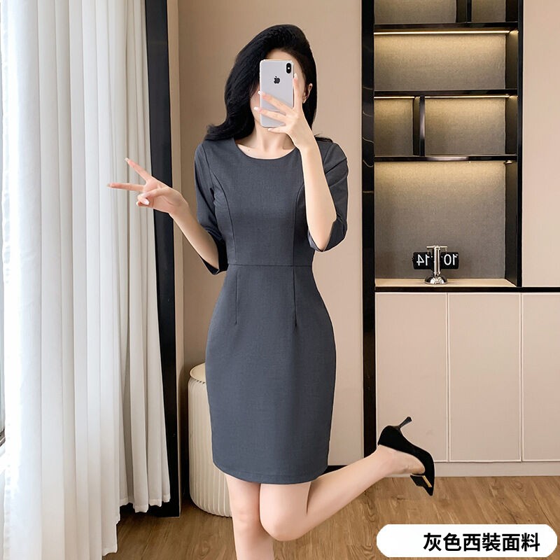 新品 含發票 職業短袖連衣裙女夏季薄款酒店前臺接待修身工作服氣質珠寶店工裝
