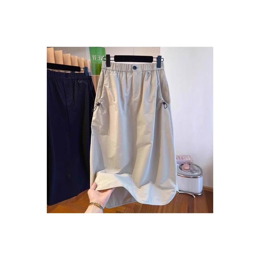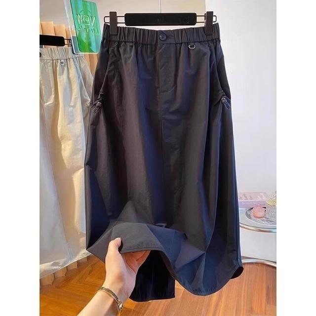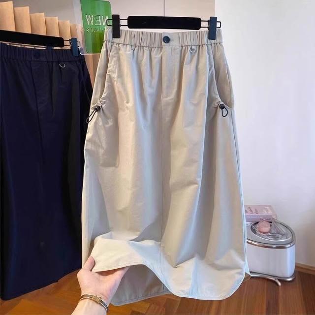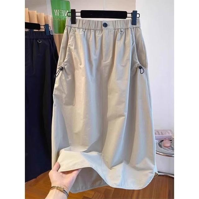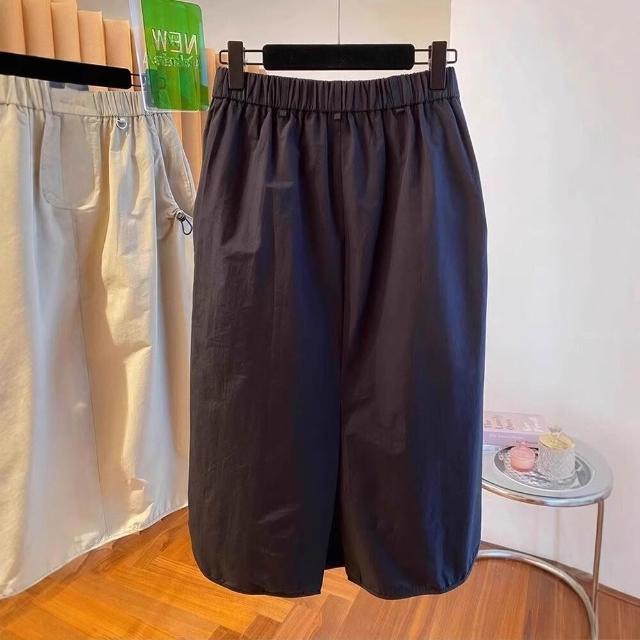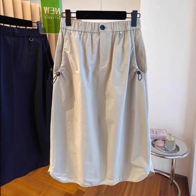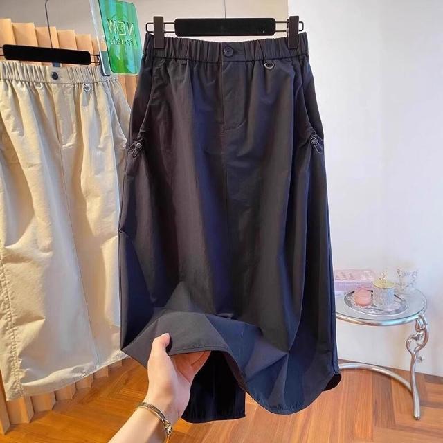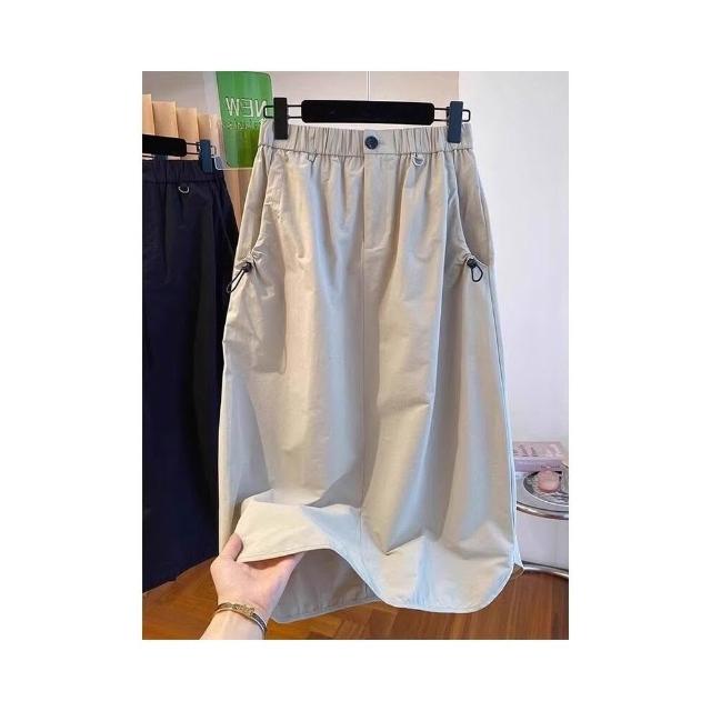 新品 含發票 美式復古口袋工裝半身裙女夏季薄款設計感高腰休閑中長款a字傘裙