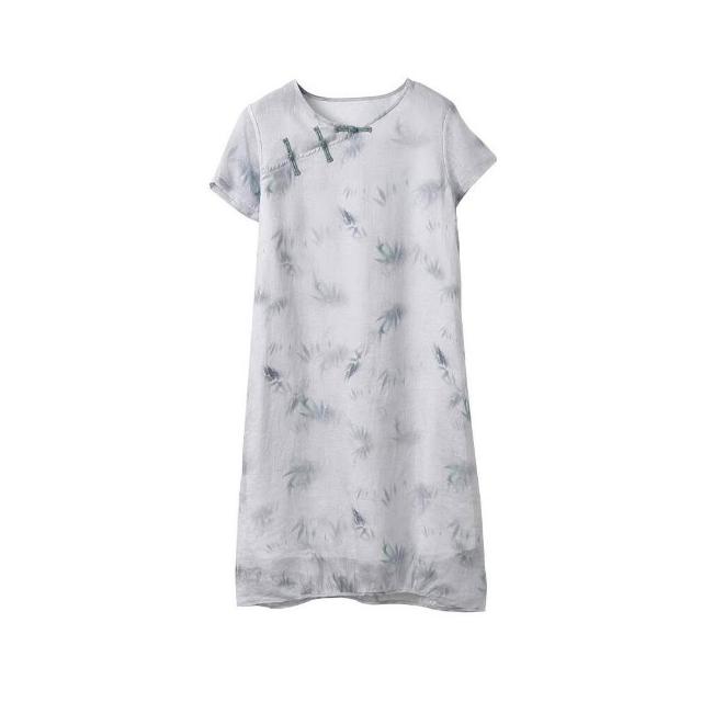 新品 含發票 棉麻女裝2023新款短袖連衣裙女夏季新中式改良旗袍苎麻國風茶服