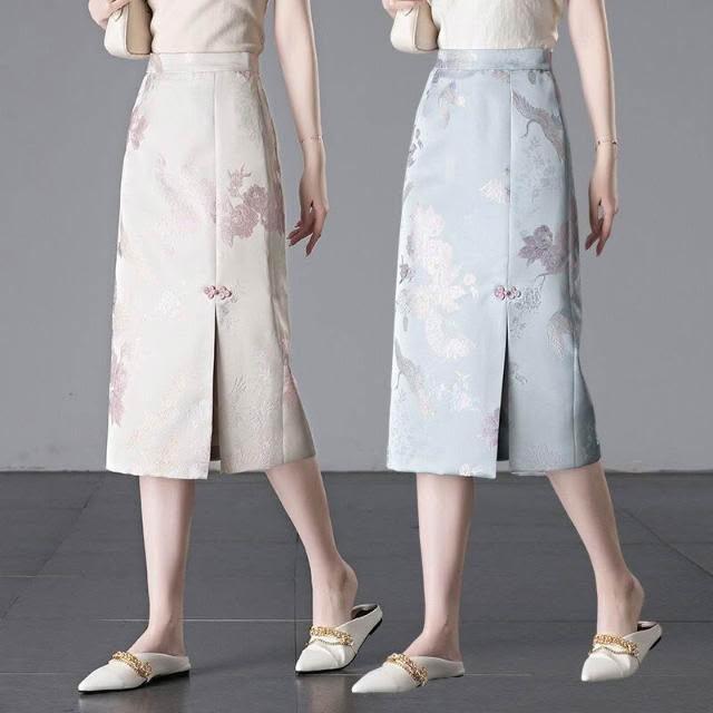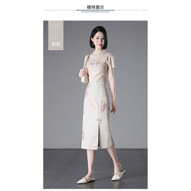 新品 含發票 新中式刺繡半身裙女2025夏季新款高端開叉a字長裙輕奢復古包臀裙