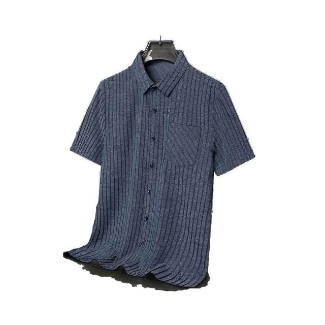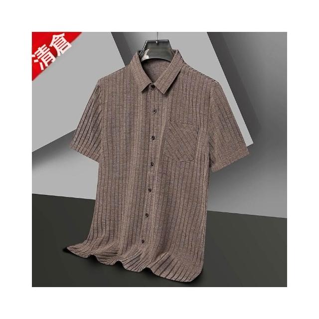 新品 含發票 亞麻+桑蠶絲夏季男士短袖襯衫商務休閑免燙中年薄款條紋襯衣