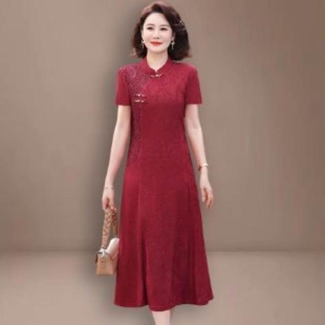新品 含發票 媽媽夏裝新中式國風短袖連衣裙洋氣中老年女裝喜婆婆婚宴裝禮服裙