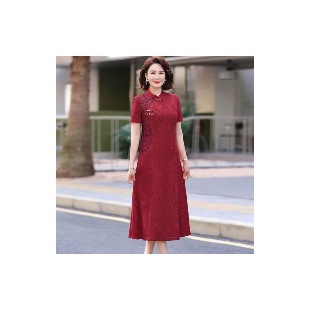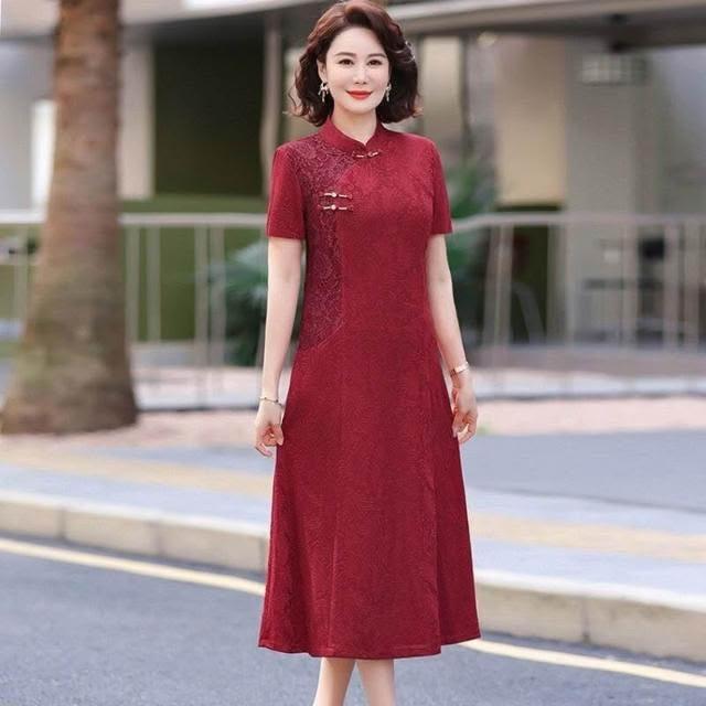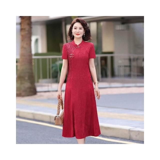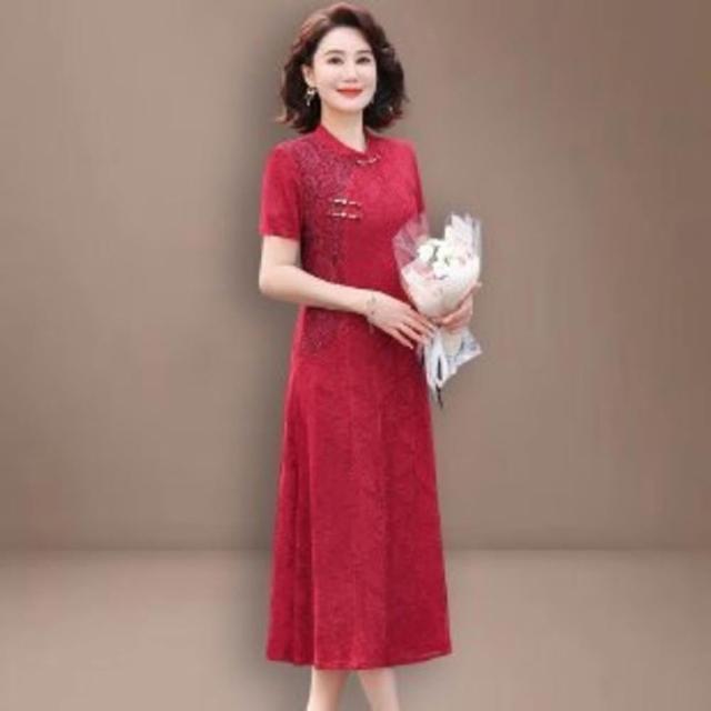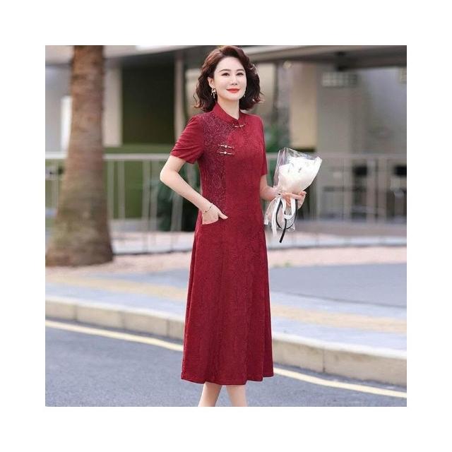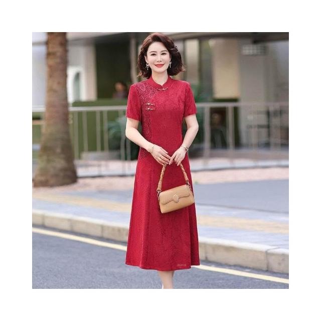 新品 含發票 媽媽夏裝新中式國風短袖連衣裙洋氣中老年女裝喜婆婆婚宴裝禮服裙