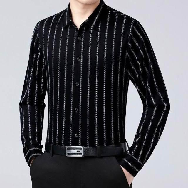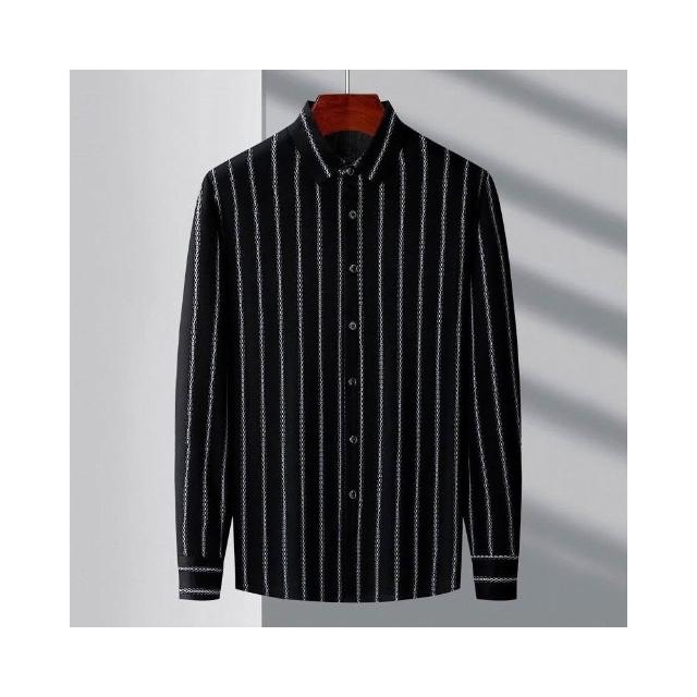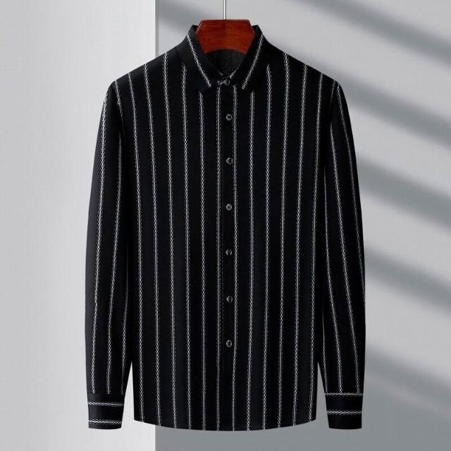 新品 含發票 輕奢高端桑蠶絲男士春秋款中年條紋襯衫長袖商務休閑抗皺翻領襯衣