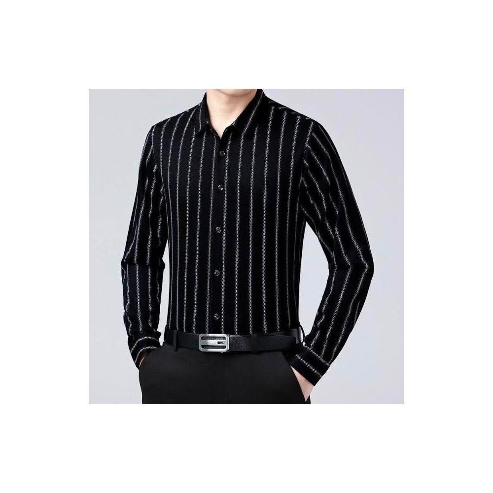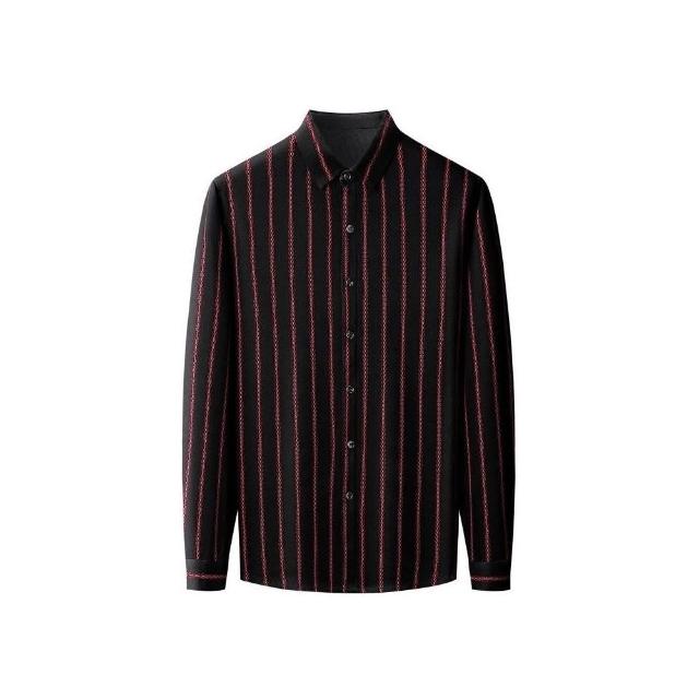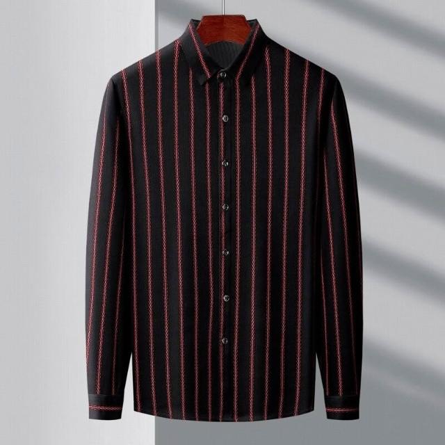 新品 含發票 輕奢高端桑蠶絲男士春秋款中年條紋襯衫長袖商務休閑抗皺翻領襯衣