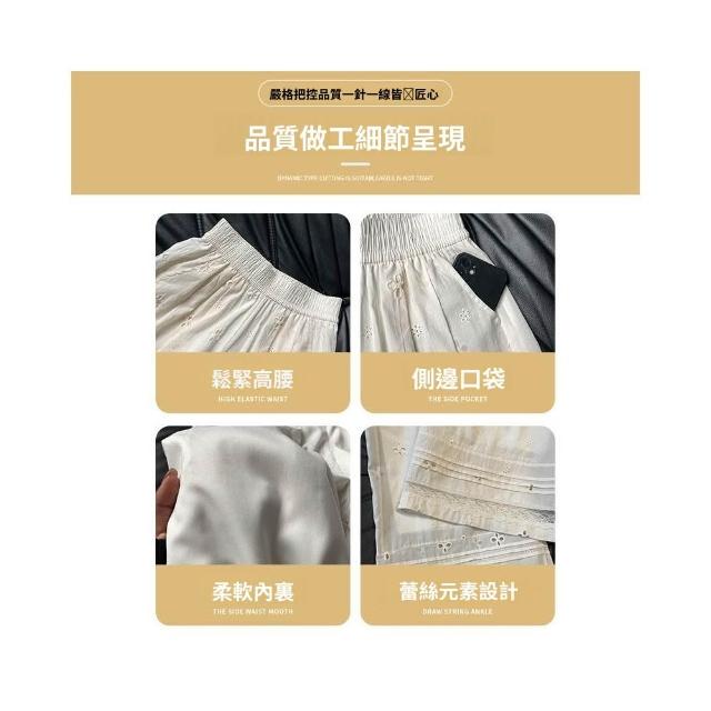 新品 含發票 白色镂空蕾絲拼接闊腿褲女夏薄款小眾設計感寬松休閑小個子直筒褲