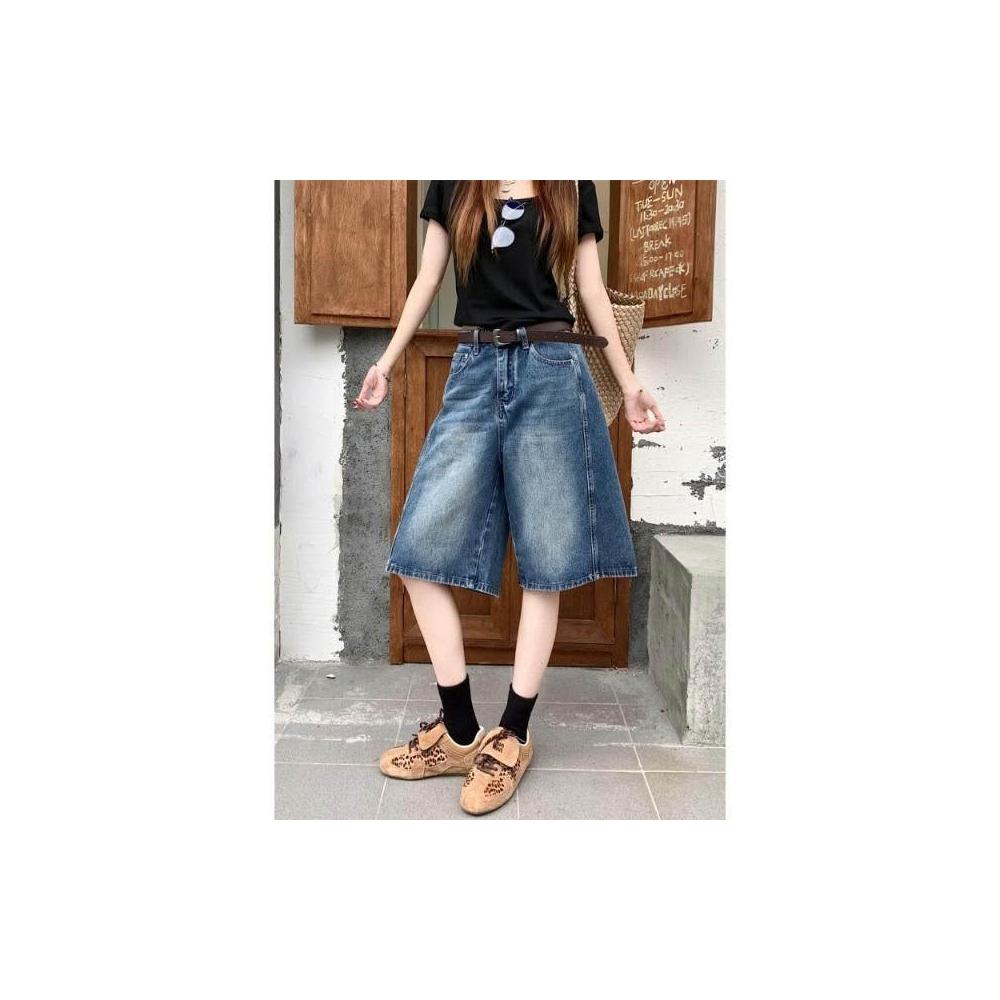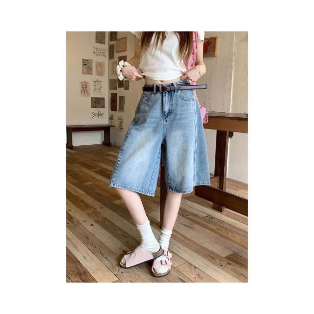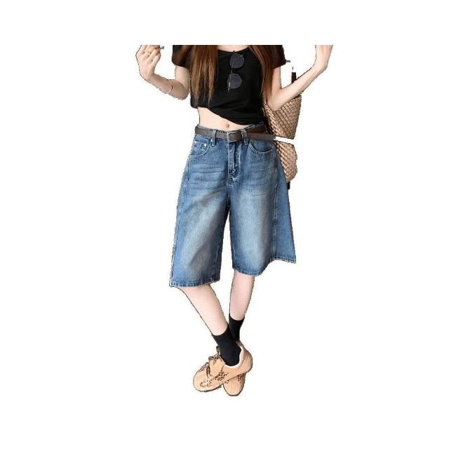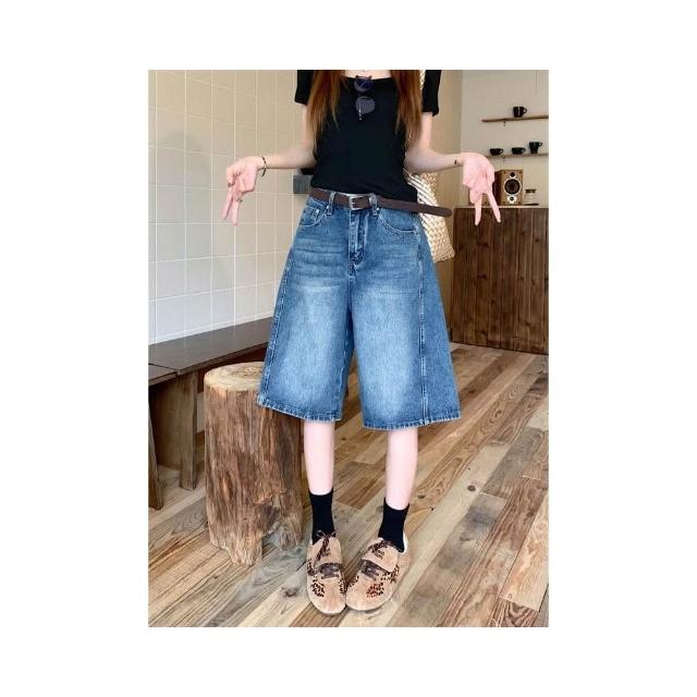 新品 含發票 五分牛仔褲女春夏季新款小個子寬松直筒高腰顯瘦闊腿a字中褲