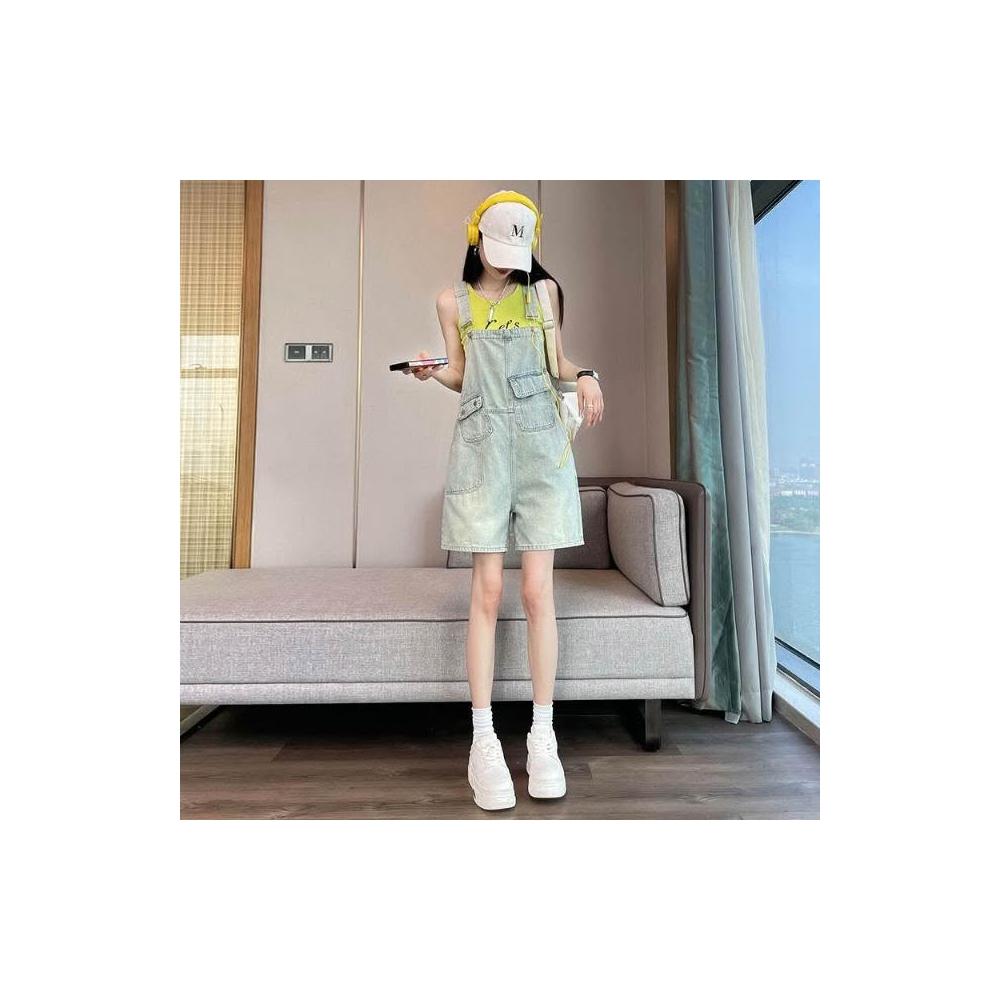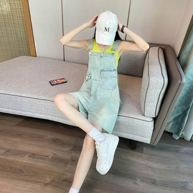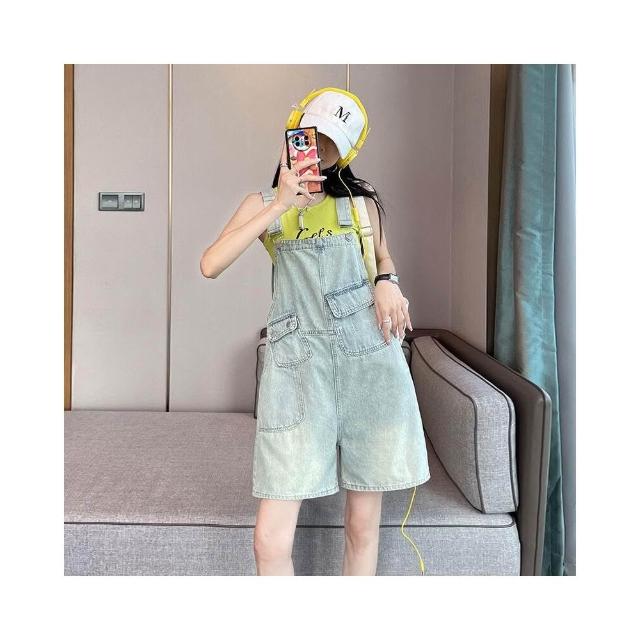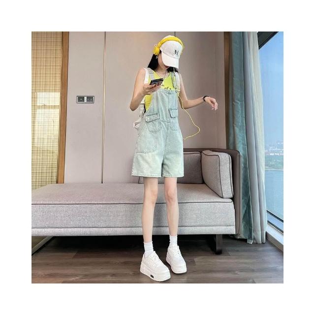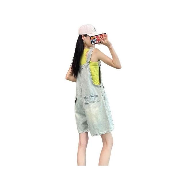新品 含發票 牛仔背帶短褲女夏季薄款2025年新款顯瘦小個子減齡吊帶闊腿連體褲