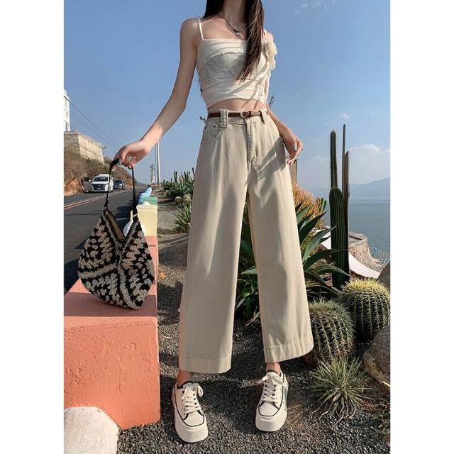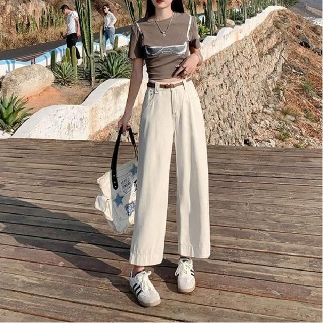 新品 含發票 天絲闊腿八分牛仔褲女2024新款夏季薄款寬松褲子bf慵懶風復古垂感