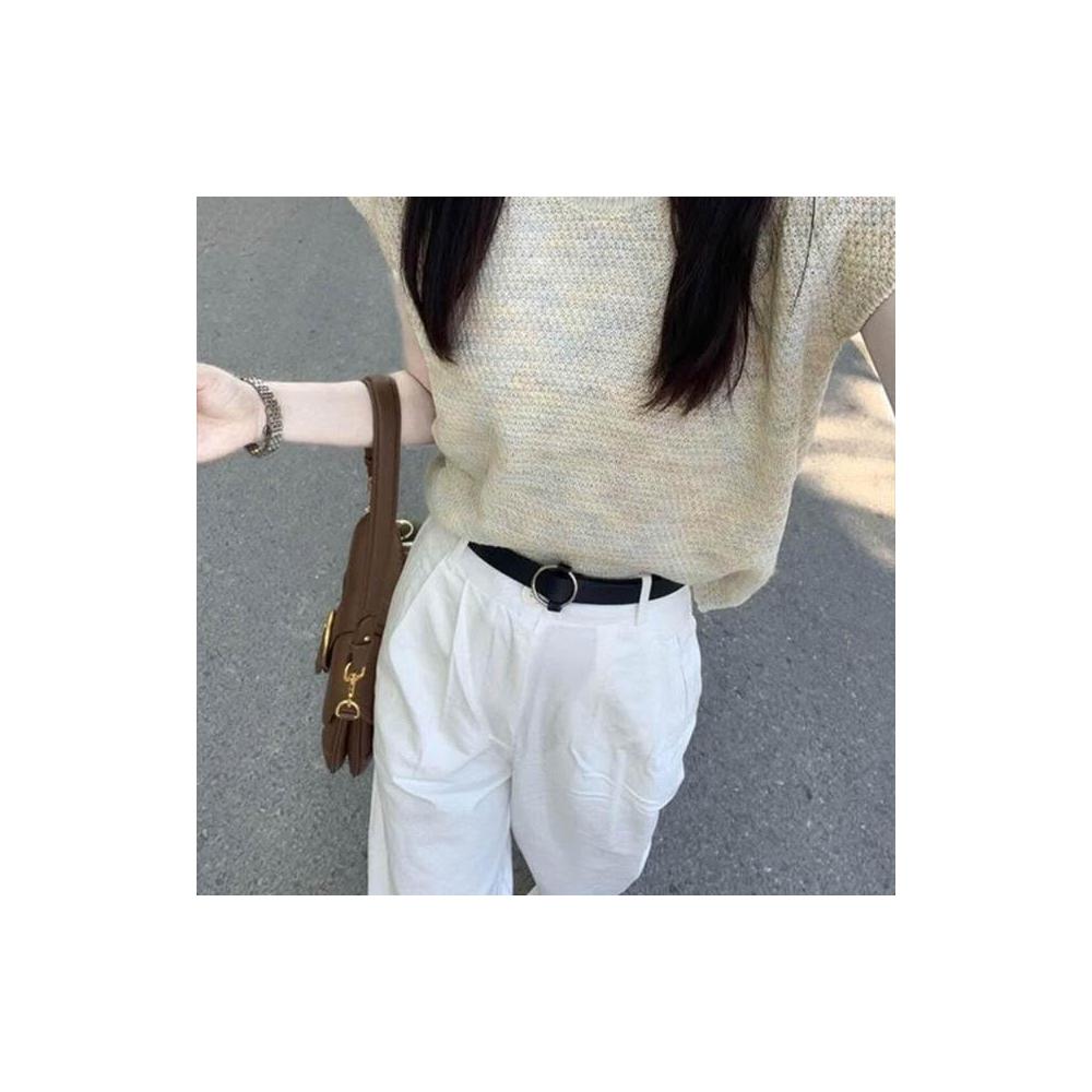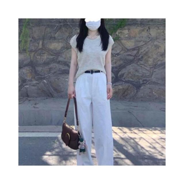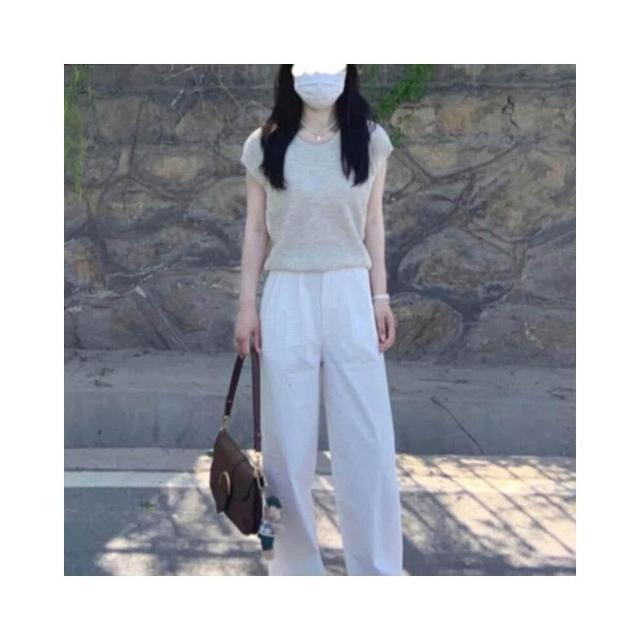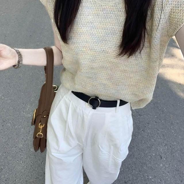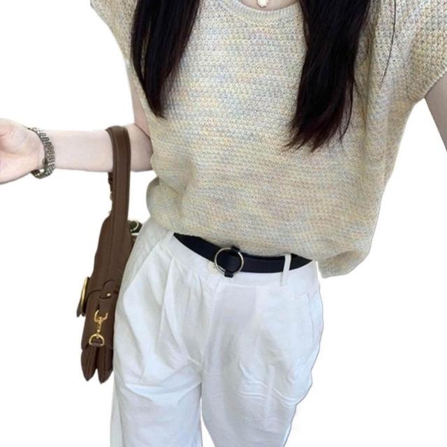 新品 含發票 坎肩圓領冰絲針織短袖T恤女夏季法式氣質溫柔設計感小飛袖短上衣
