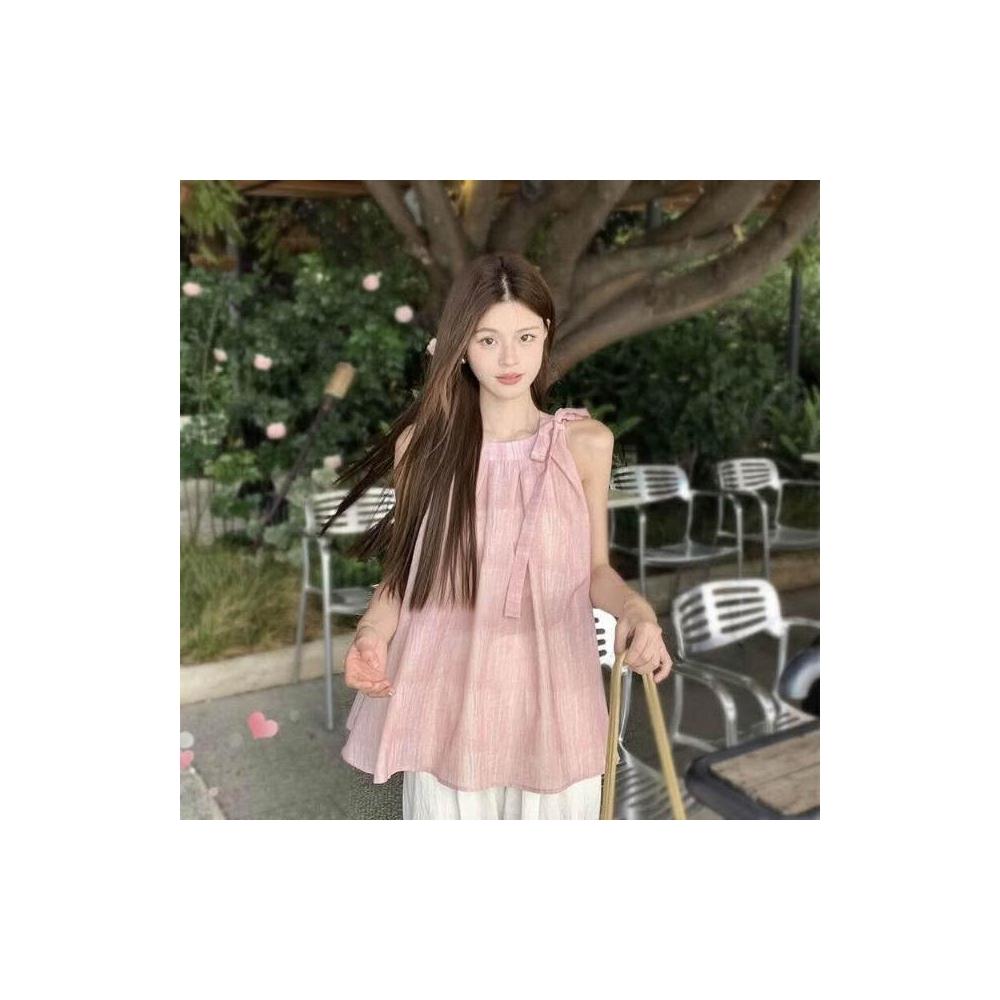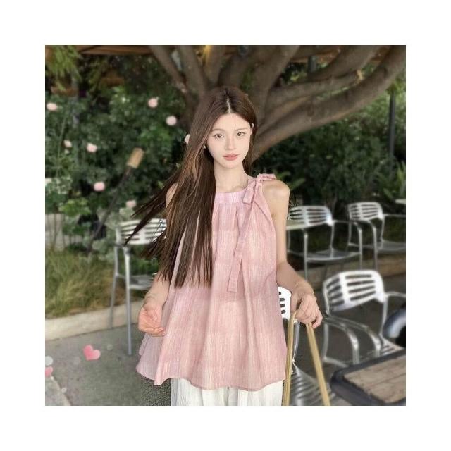 新品 含發票 2025無袖掛脖粉色漸變吊帶辣妹穿搭超好看絕美漂亮小背心女夏外穿