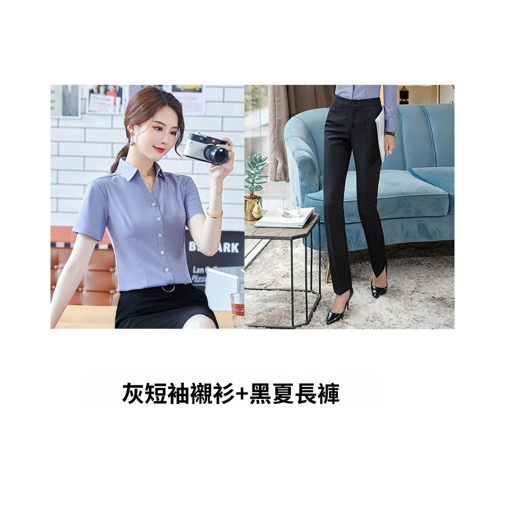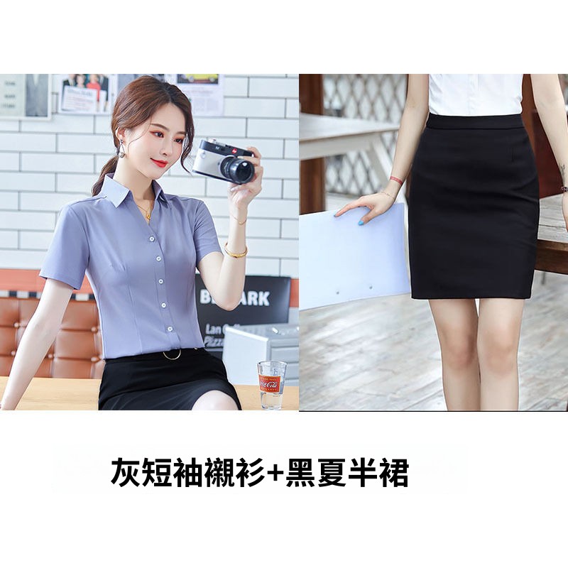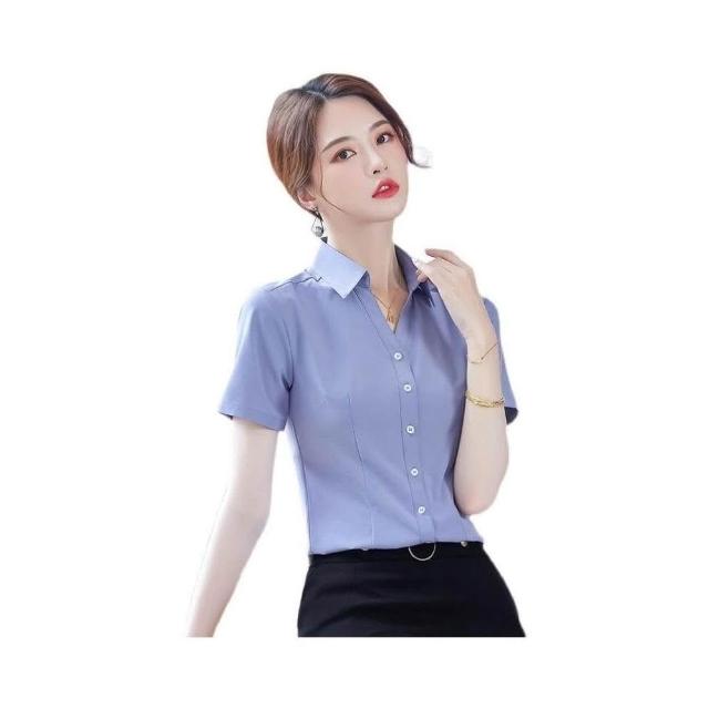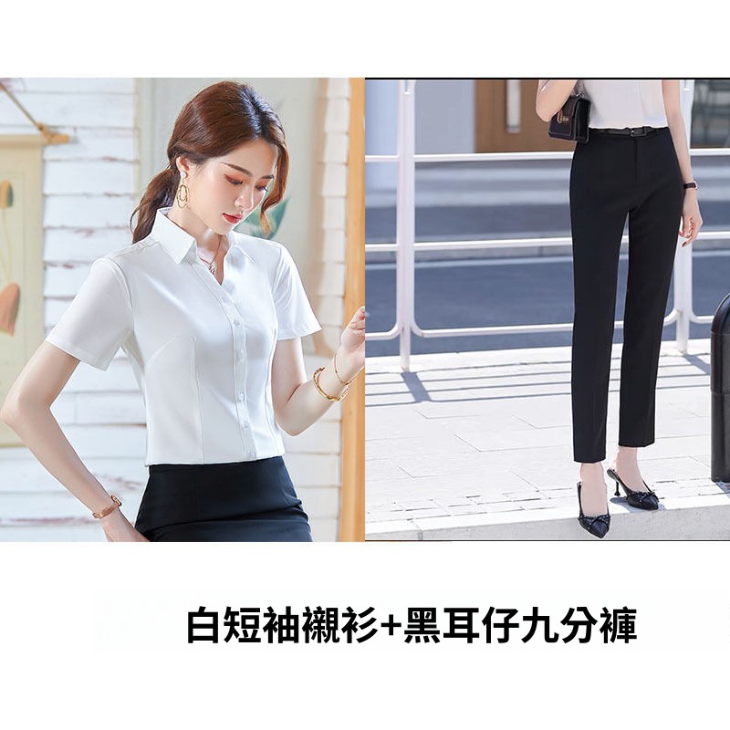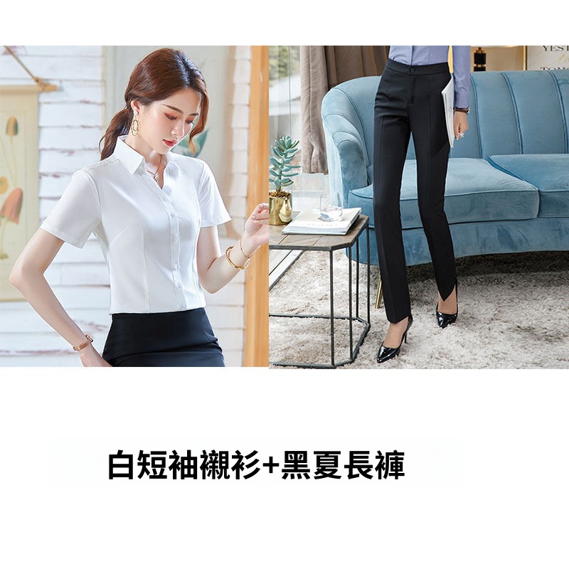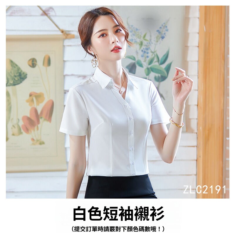 新品 含發票 白色V領職業短袖襯衫女夏季高端酒店前臺工作服珠寶店修身襯衣