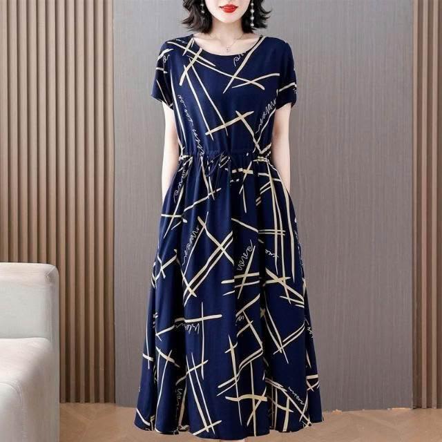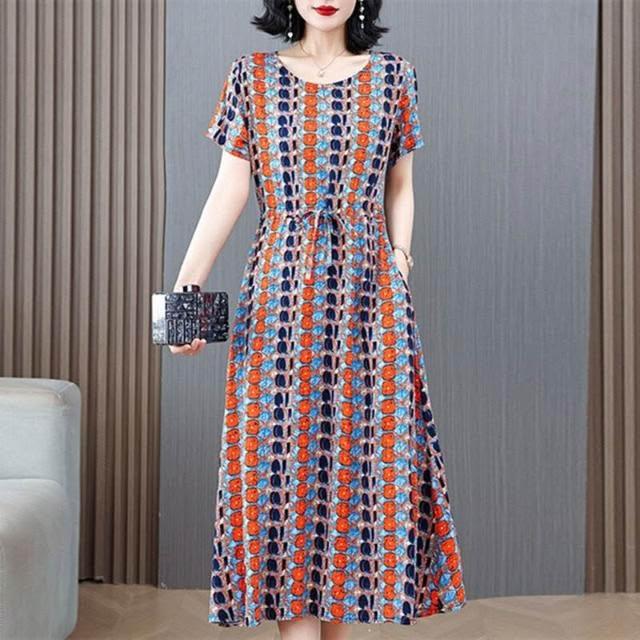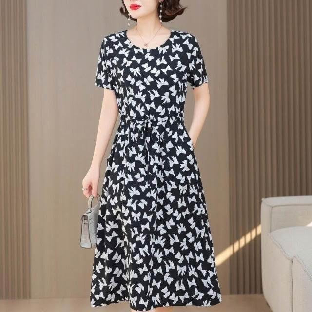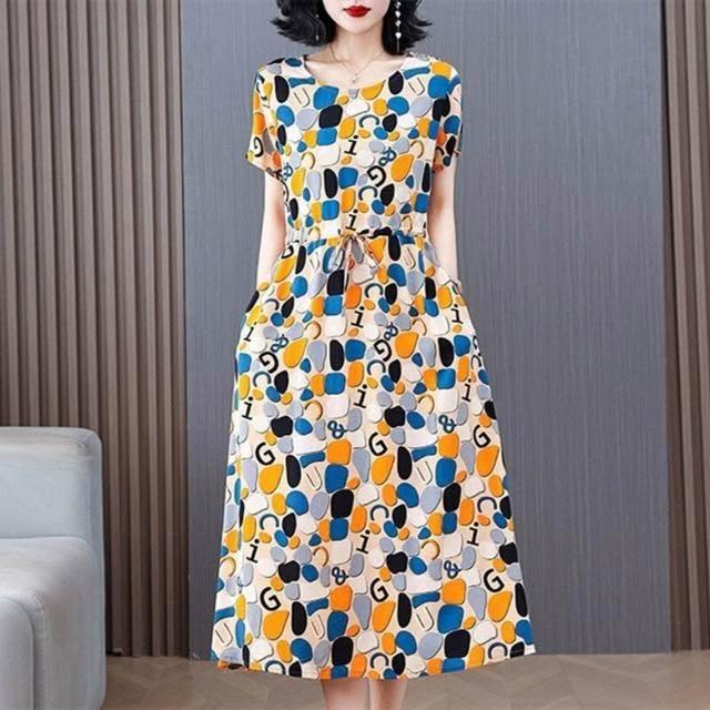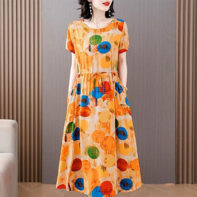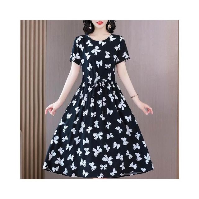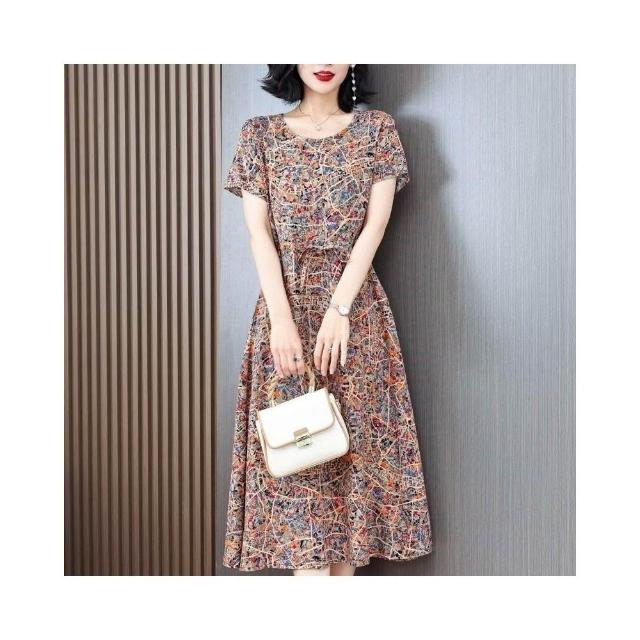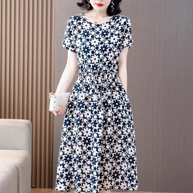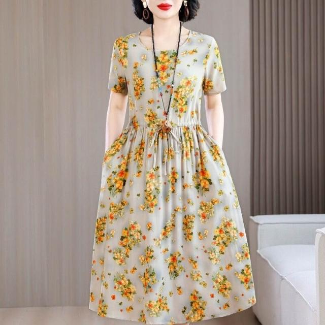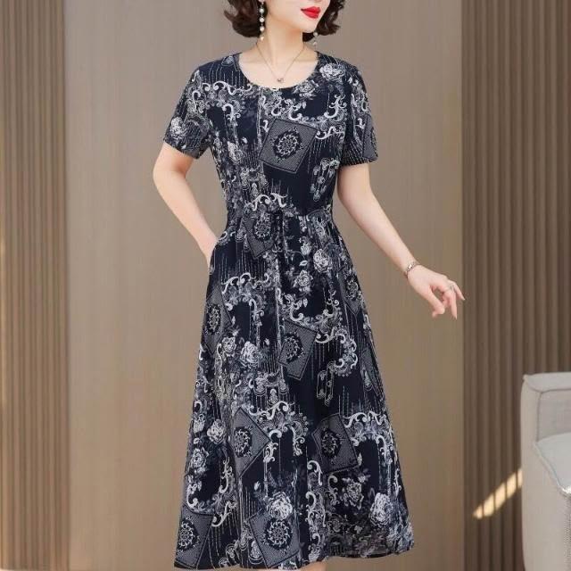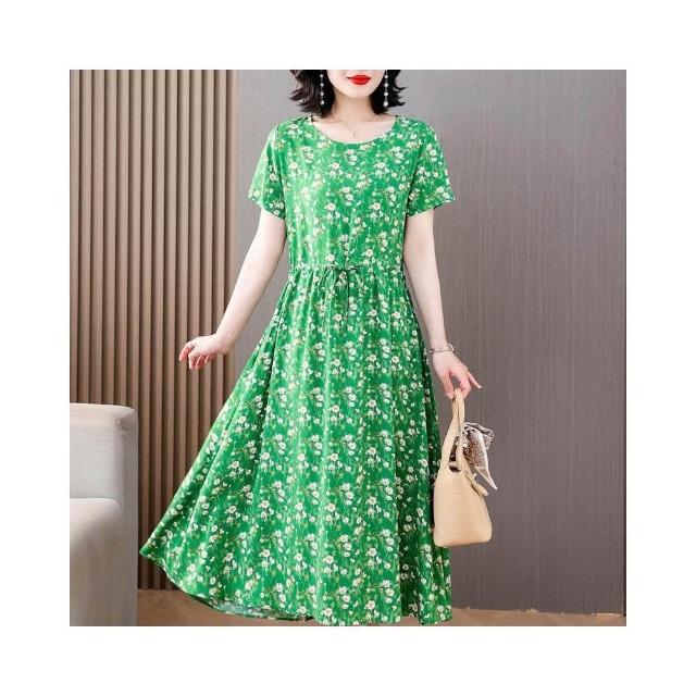 新品 含發票 中老年女棉綢連衣裙40-50歲媽媽裝夏季新款短袖寬松中長款人造棉