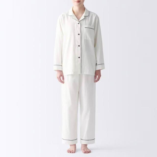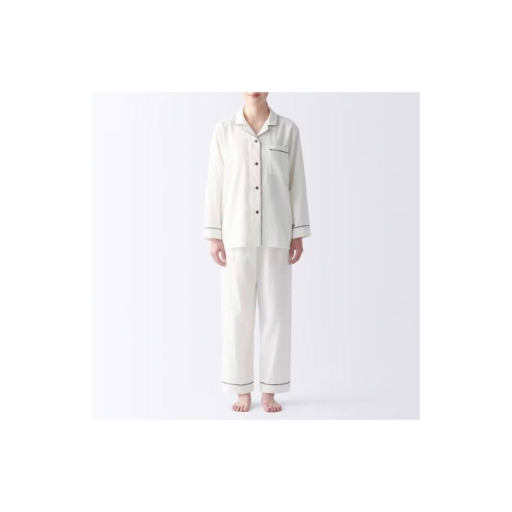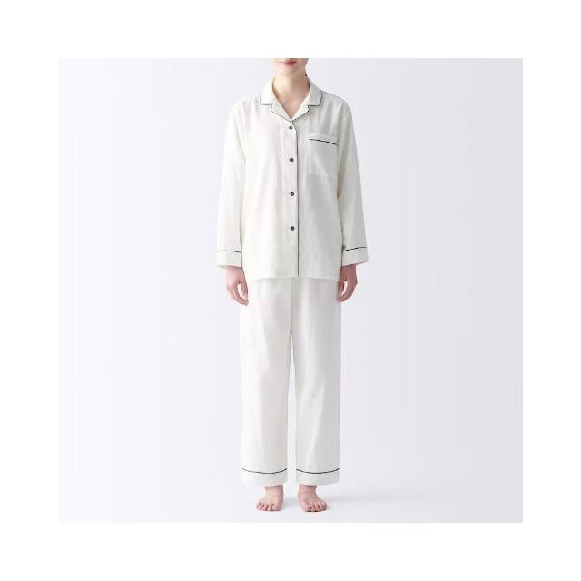 新品 含發票 無印日式良品純棉雙層紗睡衣女士春夏無側縫家居服套裝男長袖薄款