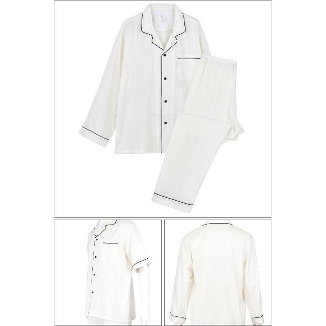 新品 含發票 無印日式良品純棉雙層紗睡衣女士春夏無側縫家居服套裝男長袖薄款