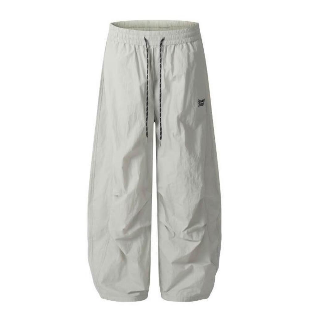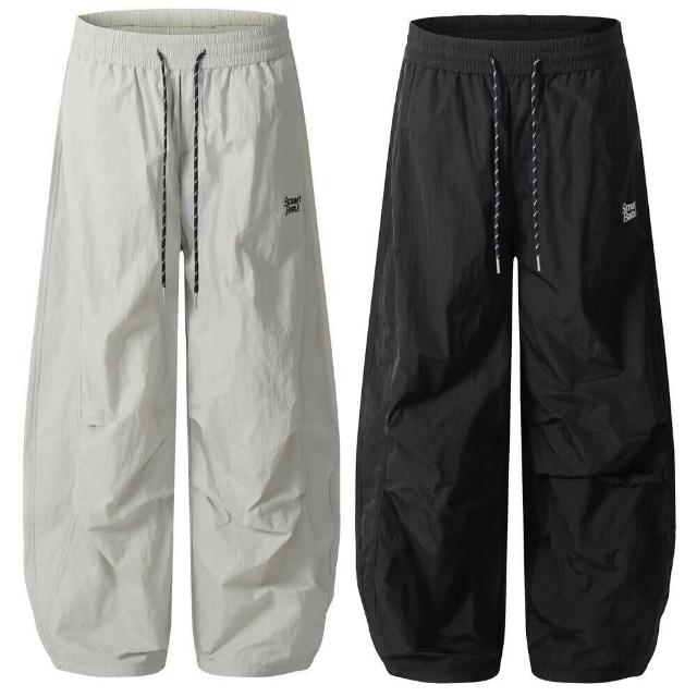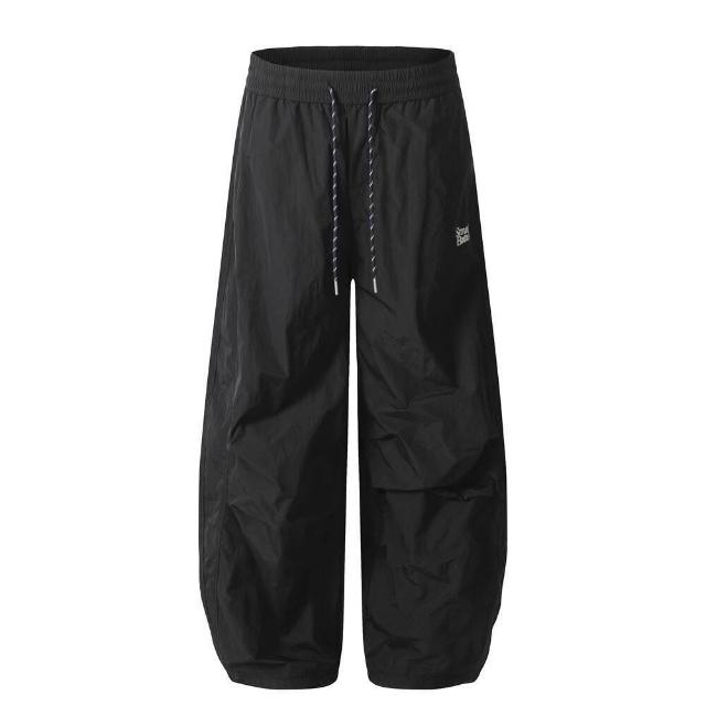 免運 含發票 歐美高街男士褲子男款簡約純色抽繩皺褶潮牌寬松新款百搭男款褲子