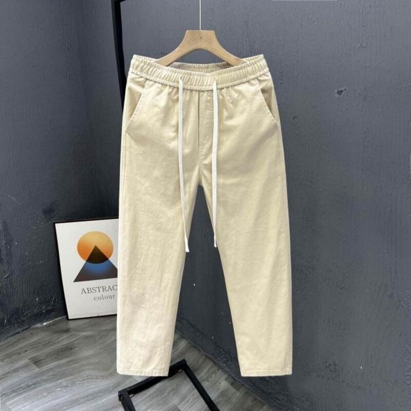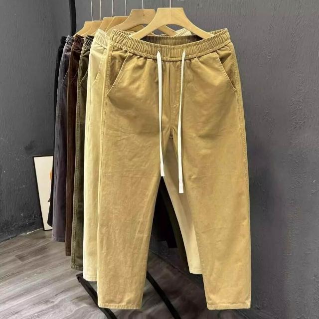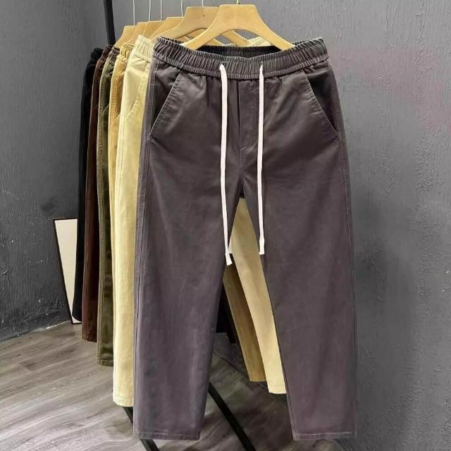 新品 含發票 免運 夏天新款潮流休閑褲男士寬松闊腿九分褲春秋季舒適百搭直筒薄褲子