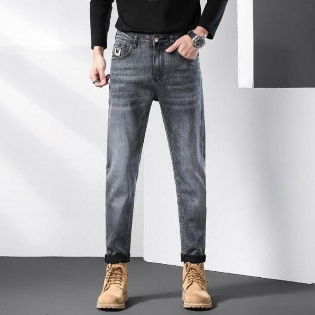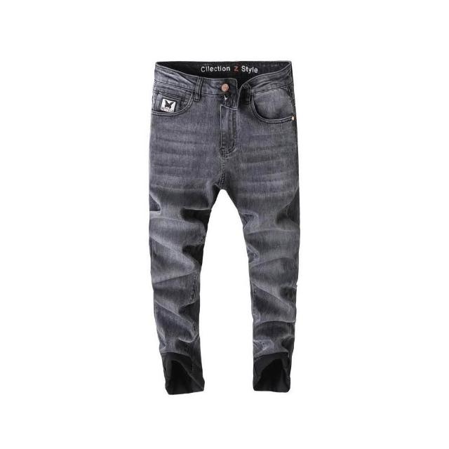 新品 含發票 免運 春夏新款水洗灰男士牛仔褲百搭刺繡男裝小直筒時尚休閑牛仔九分褲