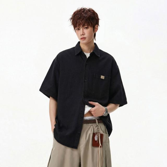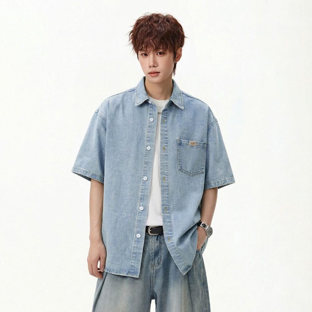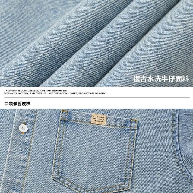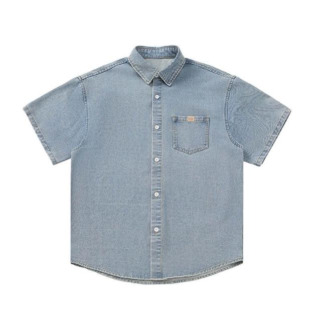 免運 含發票 水洗做舊牛仔短袖襯衫男春夏款潮牌美式復古襯衣日系寬松休閑外套