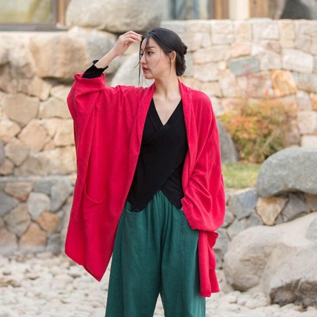 免運 含發票 26春夏新款改良亞麻砂洗禅系披肩式外衣輕薄透氣旅拍茶服女式外套