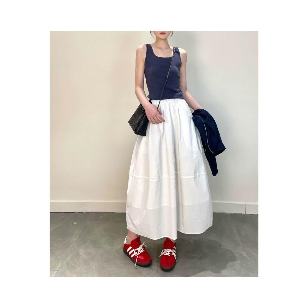 免運 含發票 法式立體剪裁白色傘裙半身裙中長款花苞裙女25春夏