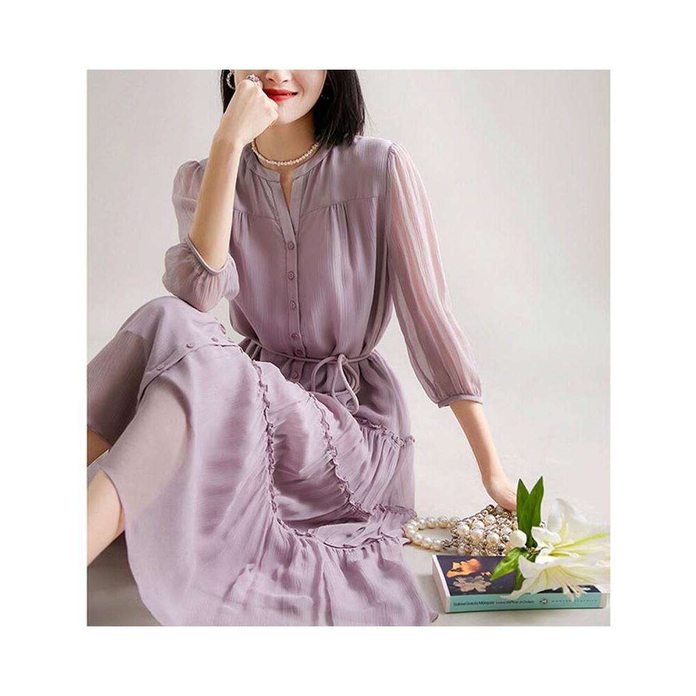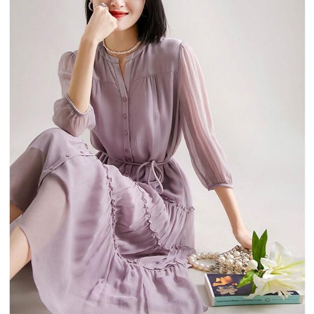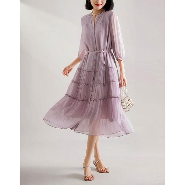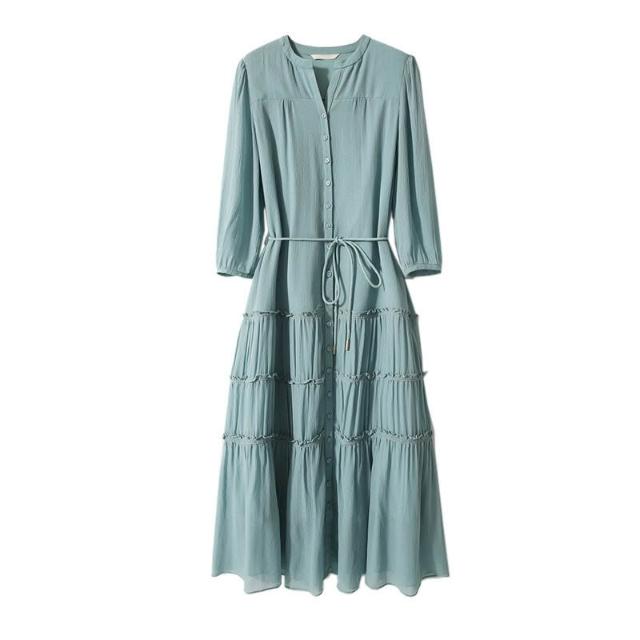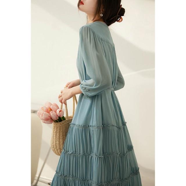免運 含發票 溫柔風連衣裙女春夏新款法式高級感氣質絕美別致七分袖仙女裙