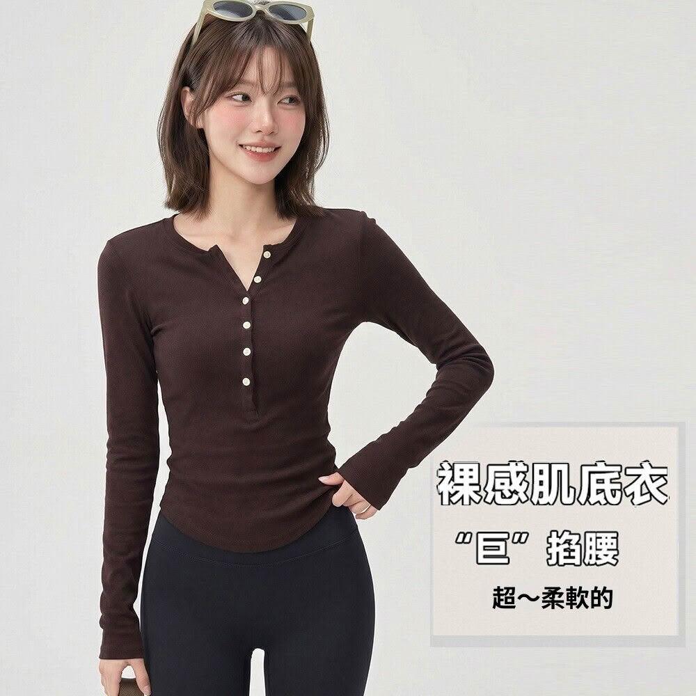 免運 含發票 2026新款瑜伽服女緊身運動長袖普拉提訓練健身上衣v領亨利衫T恤春