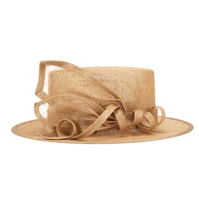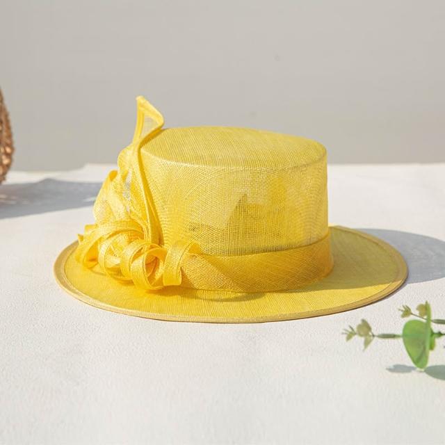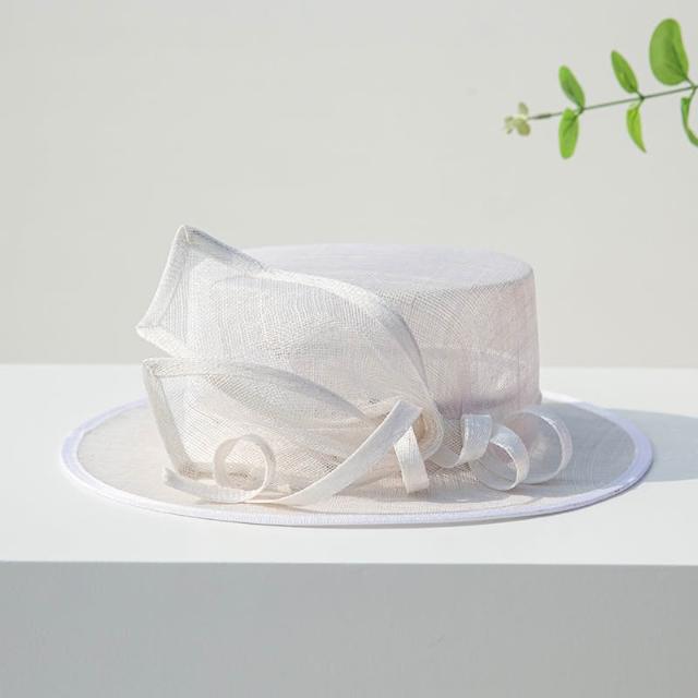 免稅 免運 跨境2026新款春夏天麻紗草帽子女法式復古平頂小禮帽優雅遮陽出遊