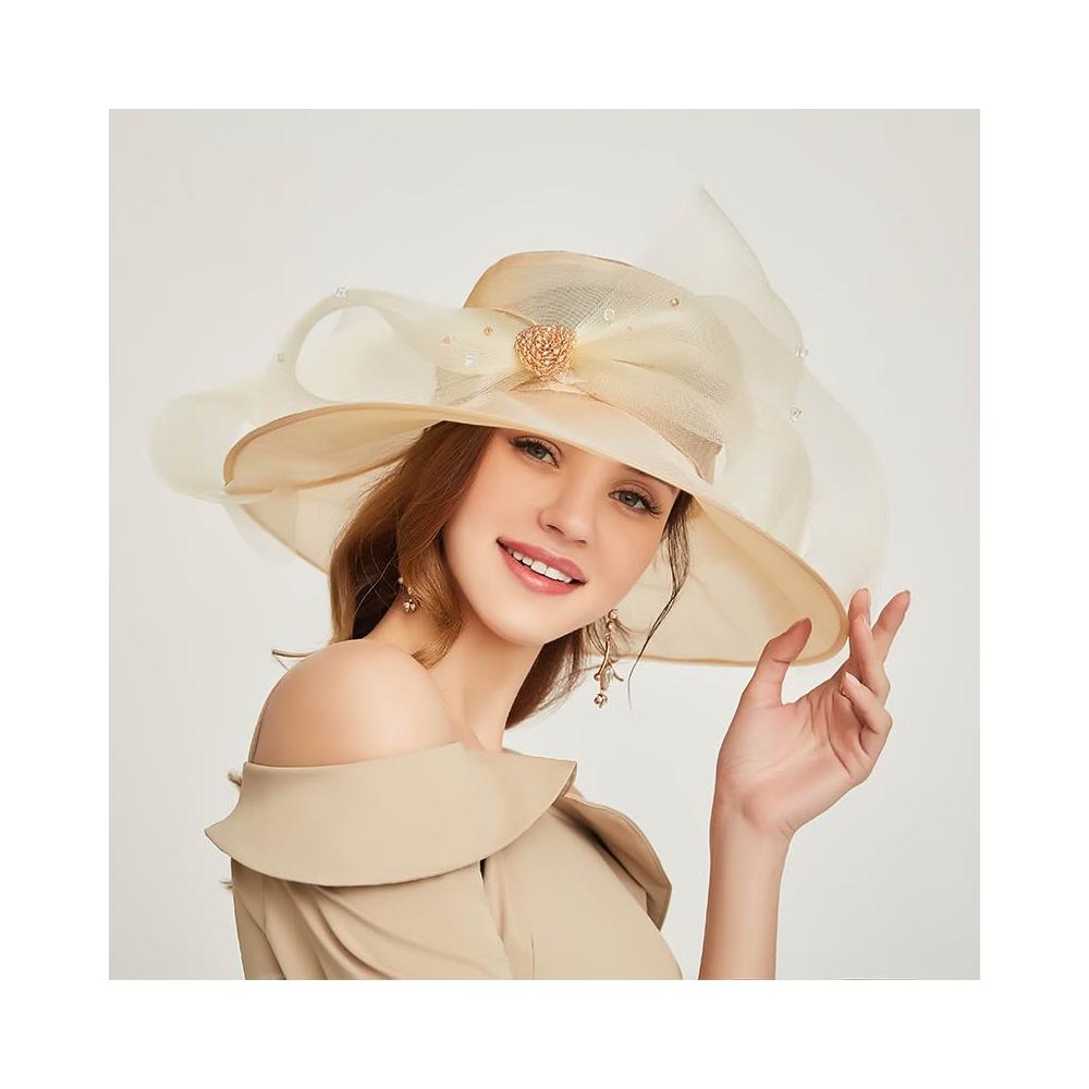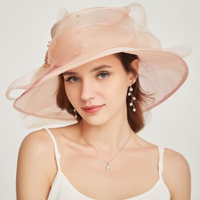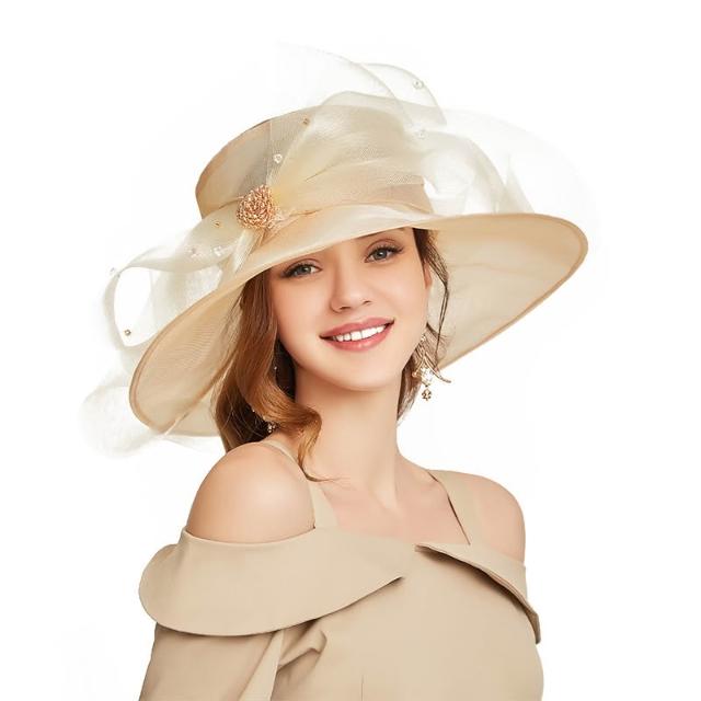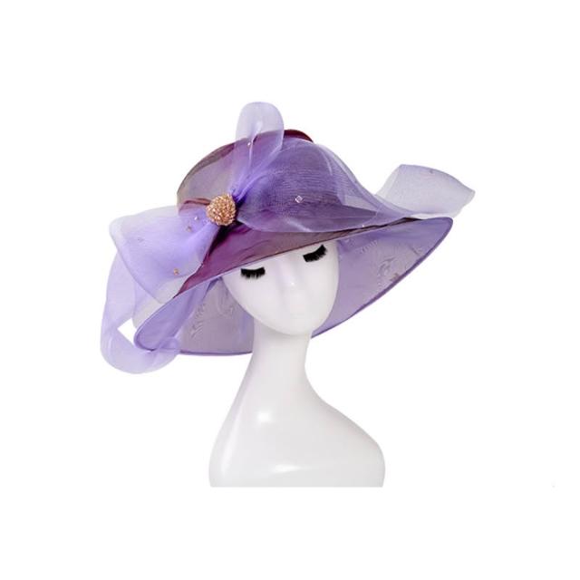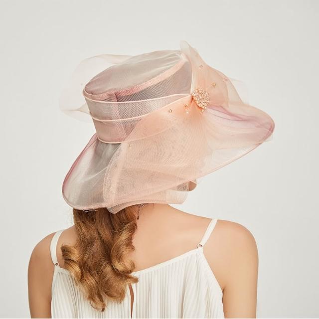 免運 免稅 歐美時尚個性歐根紗平頂帽 女款卷邊刺繡大檐帽 春夏大檐遮陽帽