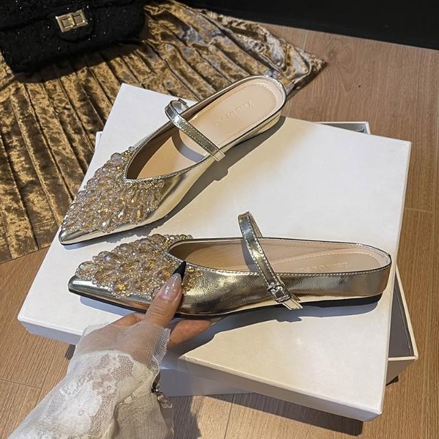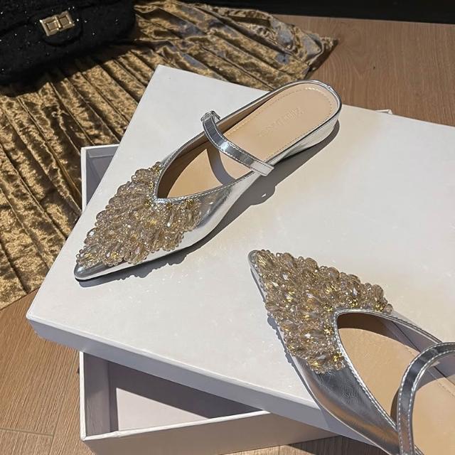 免運 免稅 2026新款水鉆包頭拖鞋女夏季外穿內增高尖頭穆勒鞋大碼女鞋41到43