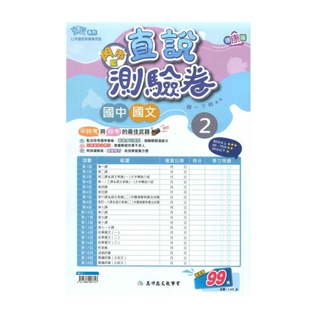 高升鑫國中直說測驗卷康版國文1下(特價99)